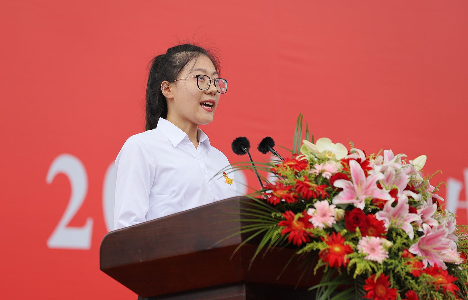 典禮上,校長邢衛(wèi)紅講話,代表學(xué)校向全體2023級(jí)新生表示熱烈歡迎,向辛勤指導(dǎo)訓(xùn)練的軍訓(xùn)教官致以崇高敬意。邢衛(wèi)紅說,江蘇大學(xué)歷史悠久、底蘊(yùn)深厚,鴻儒云集、人才輩出,特色鮮明、使命光榮,同學(xué)們?cè)谶@里求學(xué)逐夢(mèng),故事會(huì)更加精彩,將來大有可為。邢衛(wèi)紅用三句話與全體新生共勉:一是“博學(xué)”,把學(xué)習(xí)作為第一任務(wù),在博學(xué)善思中筑牢成長根基;二是“求是”,把創(chuàng)新作為第一本領(lǐng),在求是探索中增長智慧才干;三是“明德”,把人品作為最高學(xué)歷,在明德篤行中擔(dān)當(dāng)時(shí)代大任。邢衛(wèi)紅希望全體新生惜時(shí)如金、晴耕雨讀,在“博學(xué)、求是、明德”校訓(xùn)和“自強(qiáng)厚德,實(shí)干求真”江大精神指引下,創(chuàng)造更多精彩,成就美好將來。她也提出一個(gè)小希望:同學(xué)們要養(yǎng)成習(xí)慣,每天給家人報(bào)平安、與家人分享校園生活。