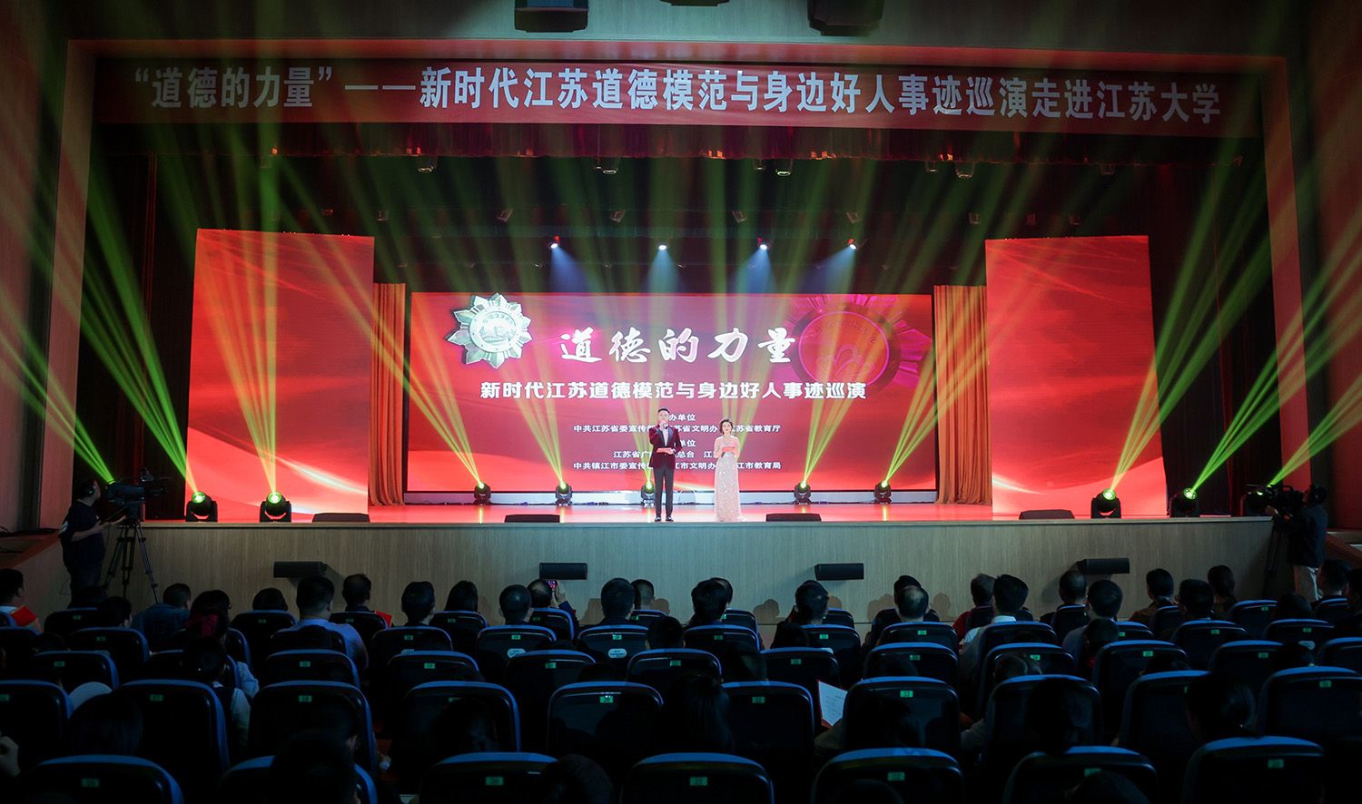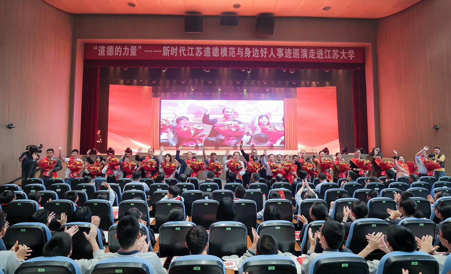 10月25日,由中共江蘇省委宣傳部、江蘇省文明辦、江蘇省教育廳主辦,江蘇省廣播電視總臺、江蘇大學(xué)、中共鎮(zhèn)江市委宣傳部、鎮(zhèn)江市文明辦、鎮(zhèn)江市教育局承辦的“道德的力量”——新時代江蘇道德模范與身邊好人事跡高校巡演走進(jìn)我校。