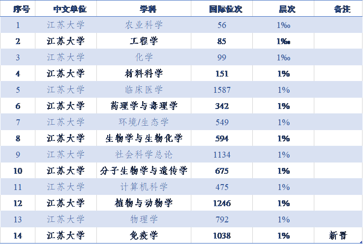 近日,科睿唯安發布了最新ESI數據,全球共有8917家科研機構上榜,其中包含432所中國內地高校。數據顯示,江蘇大學免疫學學科首次進入ESI全球排名前1%。截至目前,我校進入ESI全球前1%的學科數達14個,其中工程學、化學、農業科學3個學科排名前1‰。