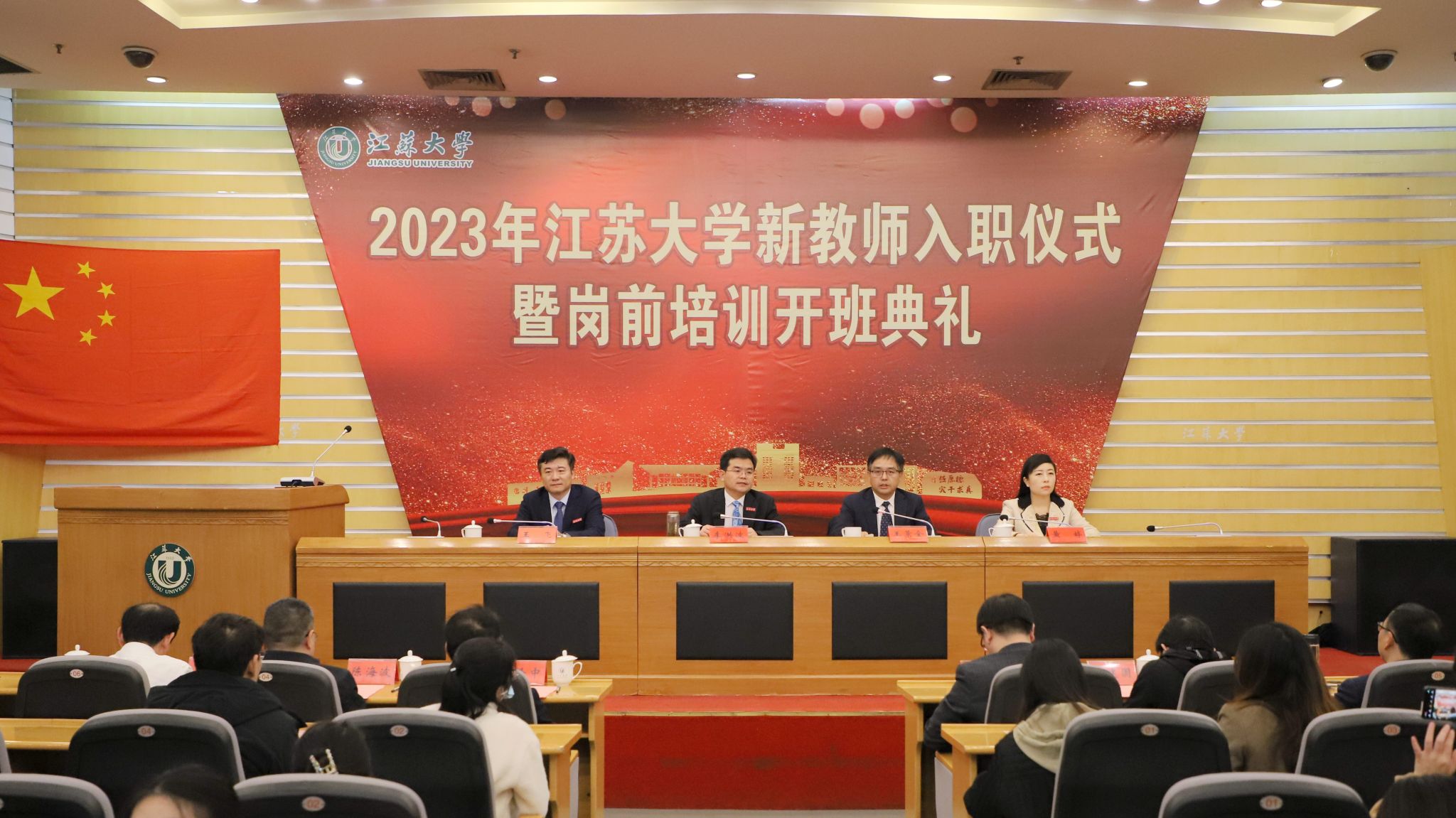 11月22日, 2023年江蘇大學新教師入職儀式暨崗前培訓開班典禮在學校會議中心第一報告廳舉行。校黨委書記李洪波、副校長王景全出席活動,人事處、人才工作辦公室、教務處、社會科學處、研究生院、學生工作處、實驗室與設備管理處、工會等職能部門負責人及全體新入職教師參加活動。活動由王景全主持。