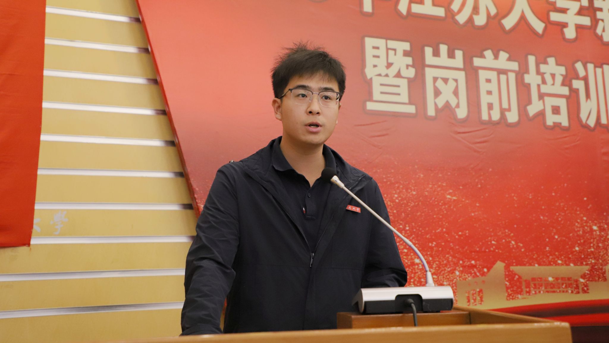 機械工程學院教師梁宇琛、能源研究院教師姜志鋒分別代表新教師和中青年教師在儀式上發言。