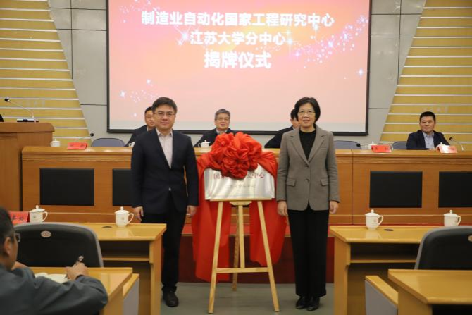 李紅和劉新共同為制造業(yè)自動化國家工程研究中心江蘇大學(xué)分中心揭牌。