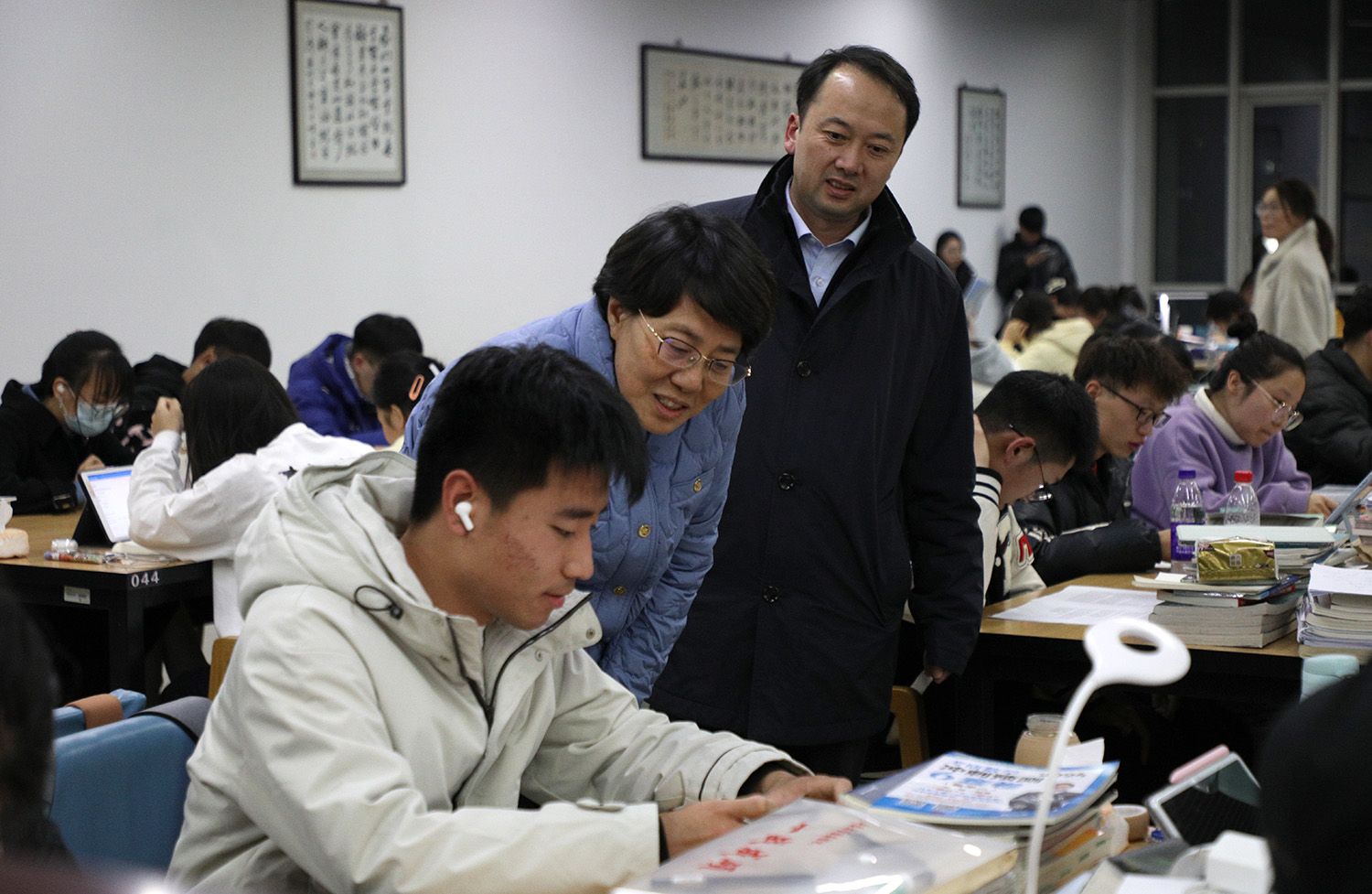 11月30日晚10點,校長邢衛紅、副校長任旭東一行走進圖書館,看望考研學子,發放慰問品近千份,為奮戰考研的莘莘學子送去親切關懷和溫暖祝福。