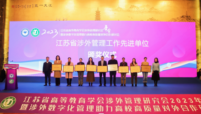 會(huì)議還表彰了2023年度江蘇省涉外管理工作先進(jìn)單位、先進(jìn)個(gè)人和特殊貢獻(xiàn)獎(jiǎng)。我校榮獲江蘇省涉外管理工作先進(jìn)單位榮譽(yù)稱號(hào),一人獲評(píng)先進(jìn)個(gè)人。(國(guó)際合作與交流處)
