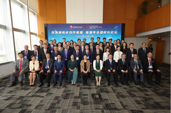 蘇港澳高校合作聯盟年會暨校長論壇在香港理工大學舉行。來自38所成員高校的130位校領導及代表參加,總結聯盟成立以來的工作情況、共商聯盟的發展計劃,深入探索蘇港澳三地高校的人才培育及創新科技研究等合作藍圖。我校副校長蔡英鳳以及人才工作辦公室、港澳臺辦公室相關人員受邀參加。