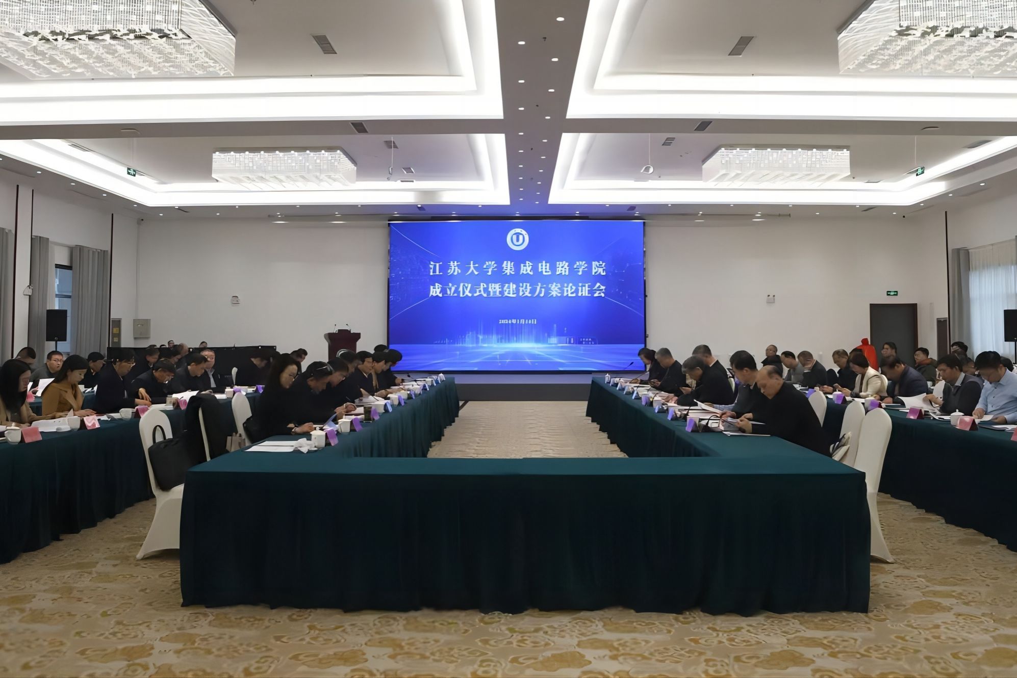 1月14日下午,學校舉行集成電路學院成立儀式暨建設方案論證會。中國科學院院士、上海技術物理研究所教授沈學礎,中國科學院院士、南京大學教授祝世寧,中國科學院院士、南京航空航天大學教授郭萬林,東南大學首席教授、國務院學位委員會集成電路評議組成員、江蘇省集成電路學會理事長時龍興,南京郵電大學黨委書記郭宇鋒,江蘇省工業和信息化廳副廳長池宇,江蘇省農業農村廳副廳長曹麗虹,工業和信息化部人才交流中心人才發展處處長程宇,江蘇大學原校長顏曉紅等論證專家,以及相關行業協會、共建合作單位領導等出席活動。