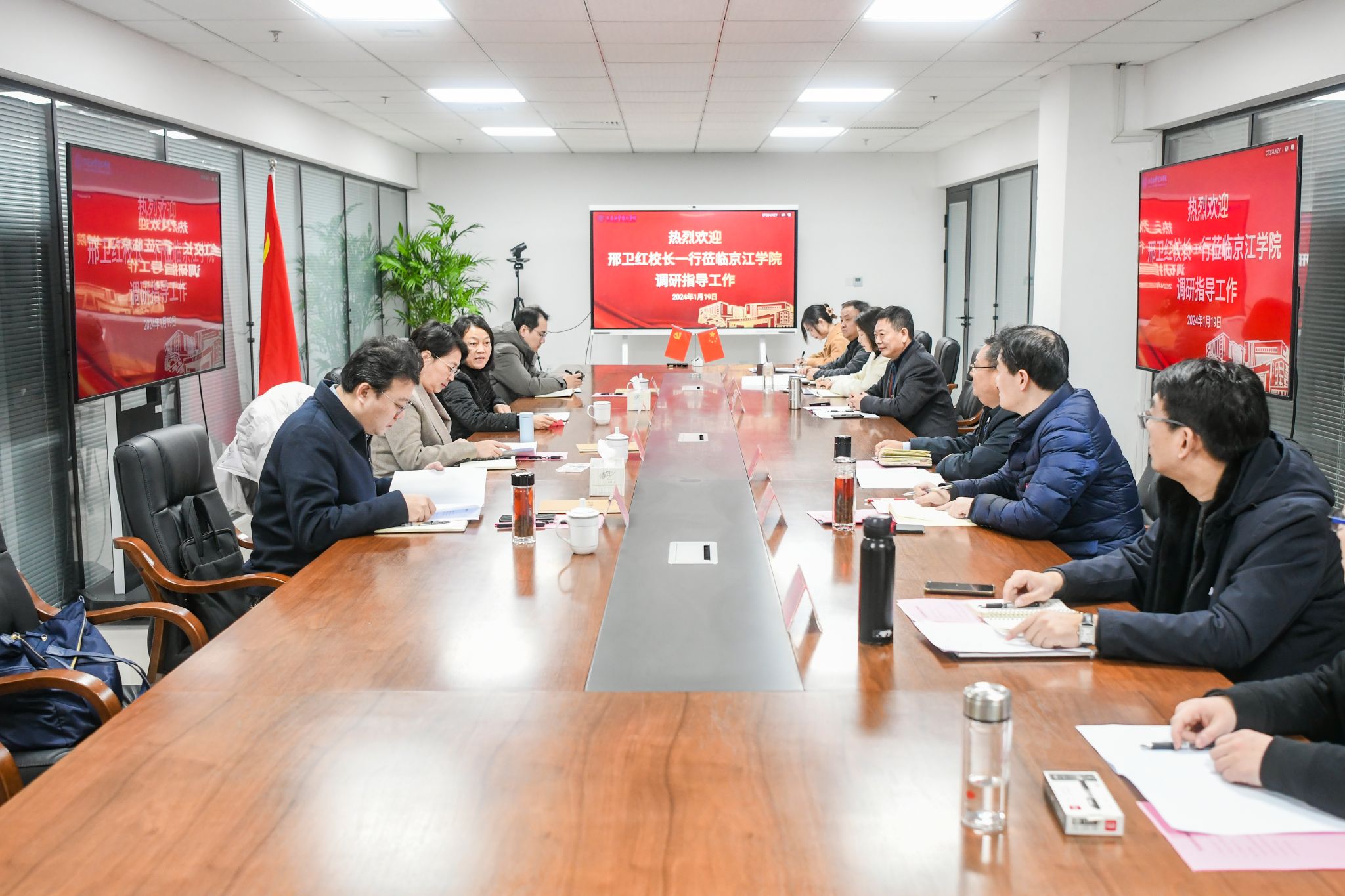 1月19日上午,校長(zhǎng)邢衛(wèi)紅、副校長(zhǎng)陳紅一行赴京江學(xué)院調(diào)研,京江學(xué)院領(lǐng)導(dǎo)班子全體成員參加座談會(huì)。