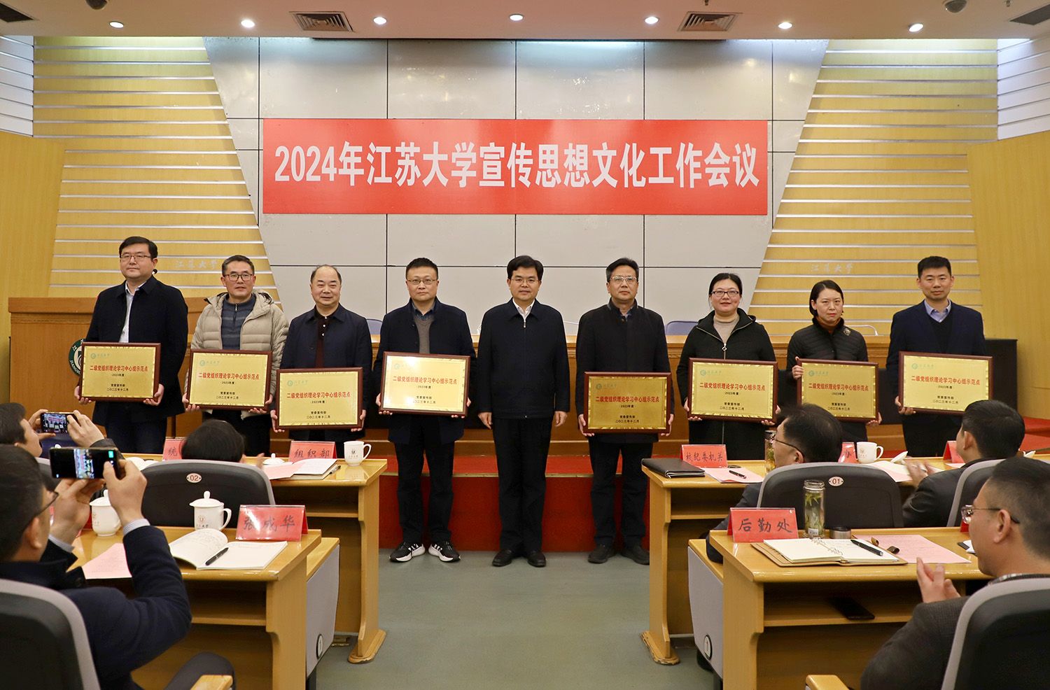 會上,對獲評2023年度二級黨組織理論學習中心組示范點、校園文化建設示范點、新聞宣傳工作先進單位的單位進行了表彰。