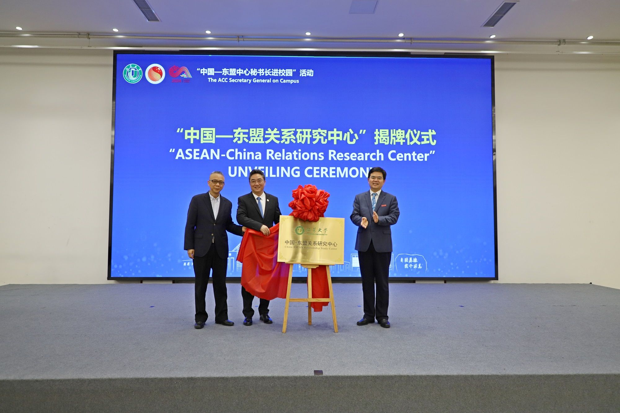 活動期間,史忠俊、李洪波和徐步共同為江蘇大學“中國—東盟關系研究中心”揭牌。