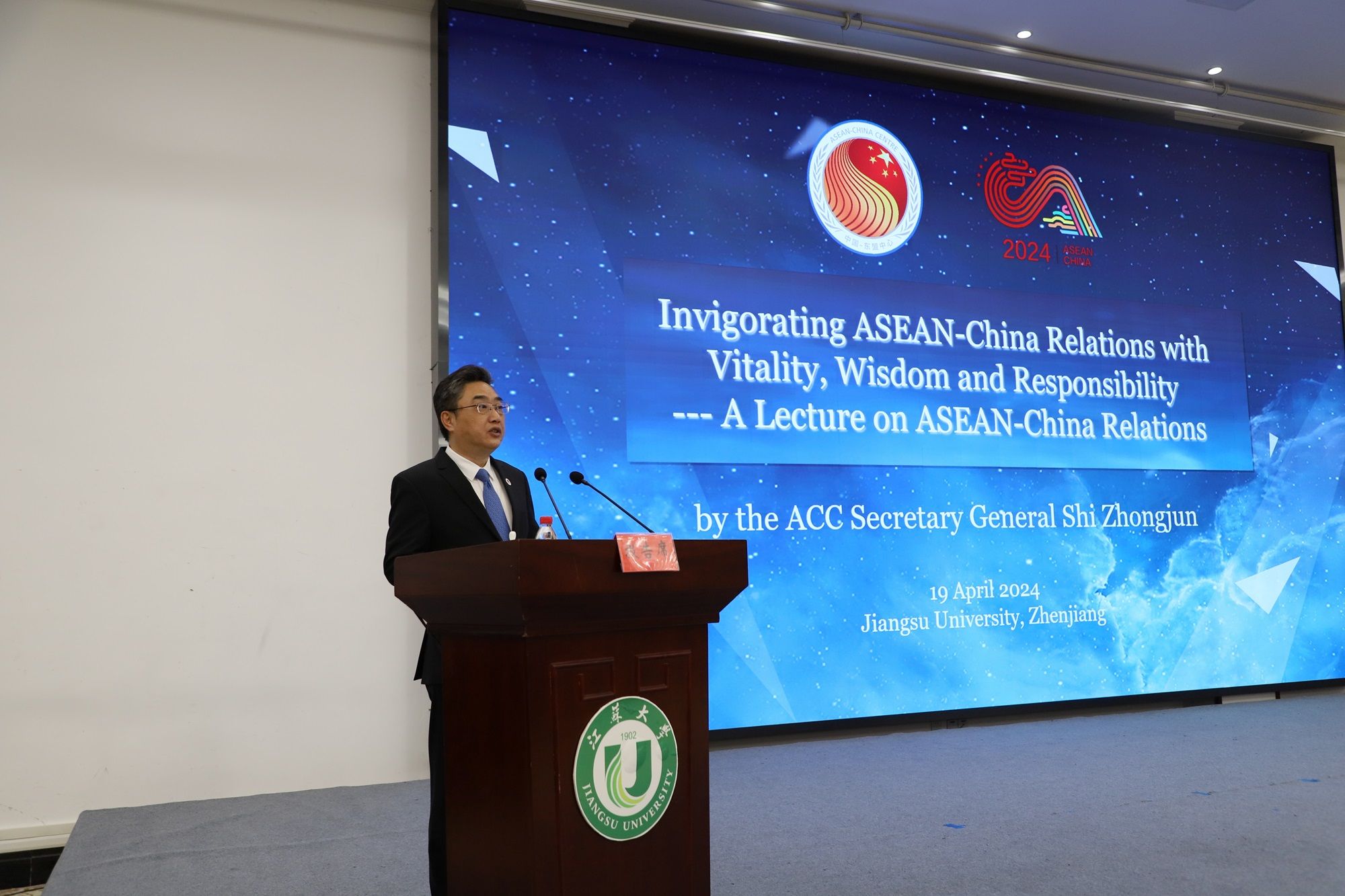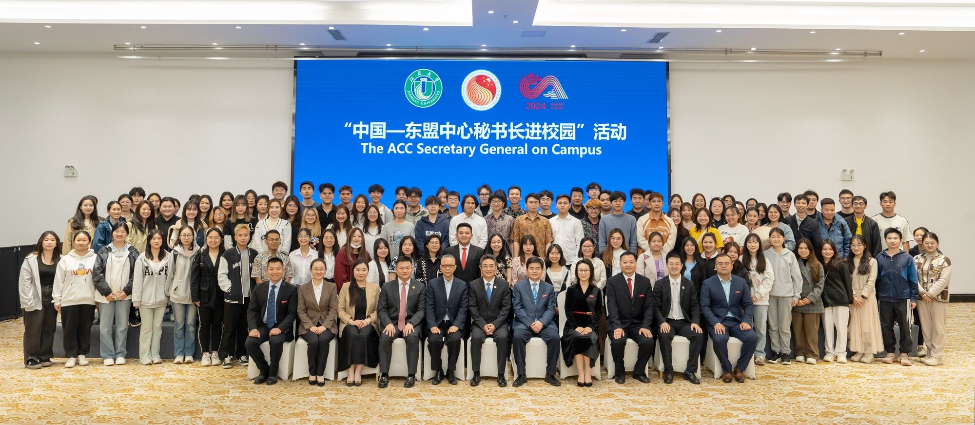 4月19日下午,“中國—東盟中心秘書長進校園”活動在青教公寓三江廳舉行。史忠俊,校黨委書記李洪波,校全球發展與安全研究院理事長徐步,中國—東盟中心綜合協調部主任孫毅、新聞公關部副主任王妍、新聞公關部官員張尚武,學校國際處、海外教育學院有關領導出席活動,近兩百名中國和東盟國家師生代表參加活動。活動由副校長蔡英鳳主持。