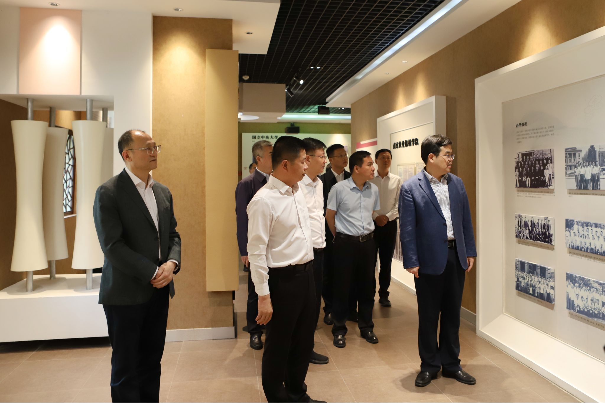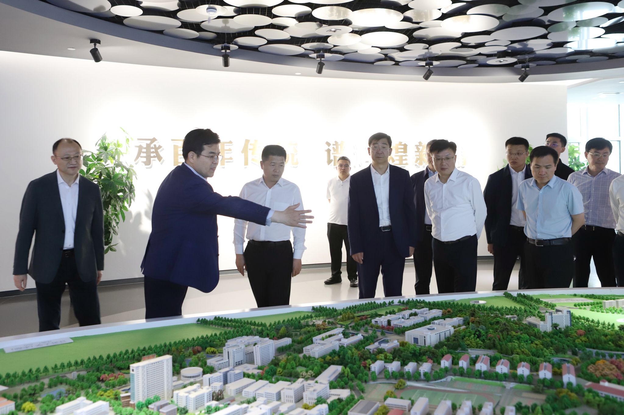 師市、鎮江市相關部門領導,學校黨委組織部、黨辦、校辦等部門負責人陪同參觀。(校長辦公室)