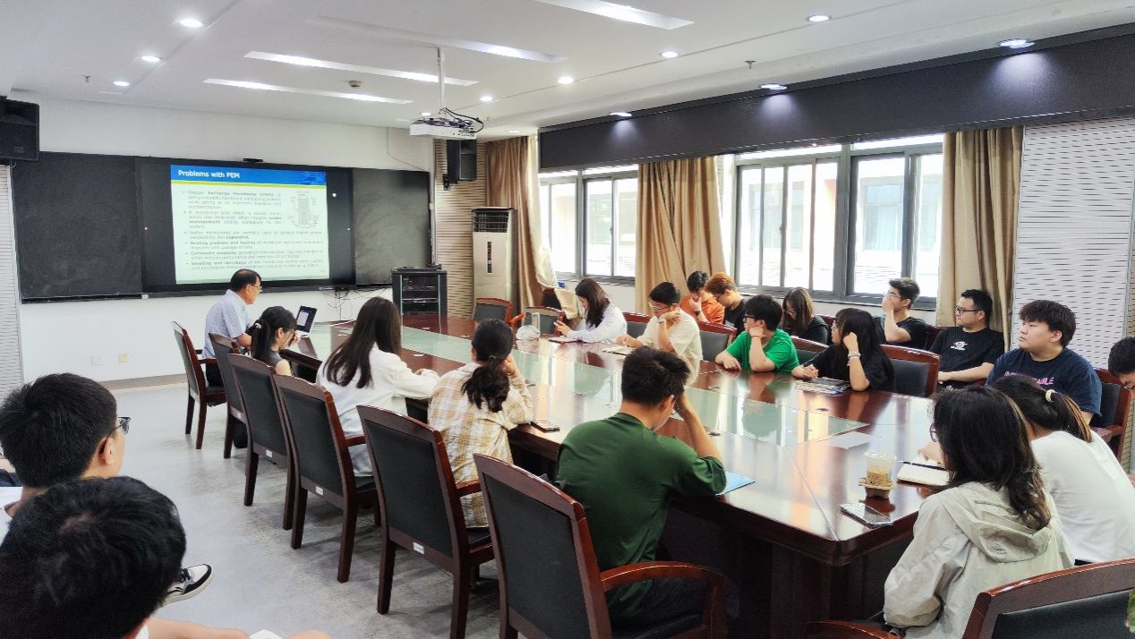 金光龍以“0ff-Design Flow Instabilities in a Centrifugal Pump with a Volute”和“Development of Flow Channels in Membraneless Microfluidic Fuel Cells”為題作學術報告,闡述了蝸殼離心泵水力性能與流動不穩定性之間的物理機制及其優化問題、無膜微流體燃料電池流道開發的關鍵技術及工程應用。會后,金光龍與老師和研究生進行了學術互動與交流。