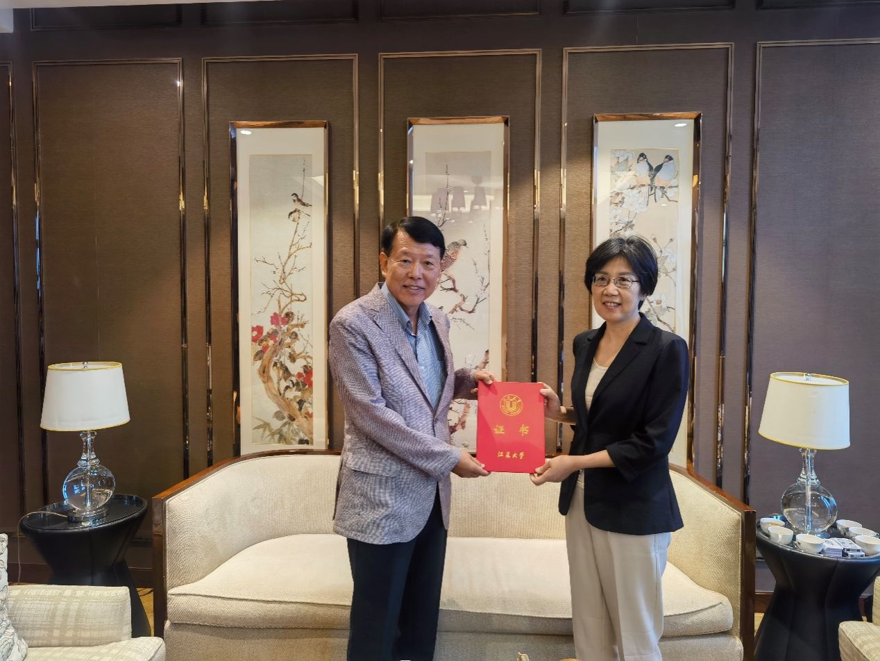 副校長李紅教授為金光龍佩戴校徽并頒發聘書,并感謝他長期以來對我校特別是國家水泵及系統工程技術研究中心發展的大力支持,希望他繼續為我校動力工程及工程熱物理學科高水平建設出謀劃策,大力支持學校國際科技合作平臺建設,未來在相關領域開展合作研究。