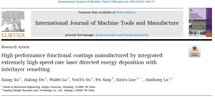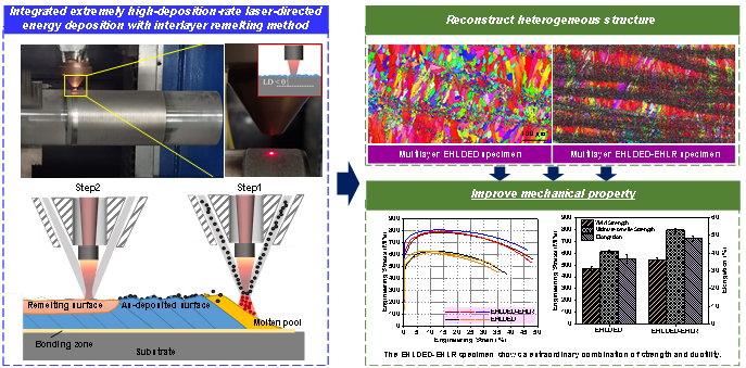 近日,我校機械工程學院魯金忠教授、羅開玉教授團隊研究開發了一種新型超高速激光復合增材制造技術(EHLDED-EHLR),顯著促進了凝固過程中狀晶向等軸晶的轉變,形成了以超細等軸晶主導的空間異質結構,材料強韌性實現同步提高。相關研究成果以“High-performance functional coatings manufactured by integrated extremely high-speed-rate laser directed energy deposition with interlayer remelting”為題發表在機械制造領域頂刊《國際機床與制造雜志》(International Journal of Machine Tools and Manufacture)上。青年教師徐祥為論文第一作者,魯金忠、羅開玉為共同通訊作者。