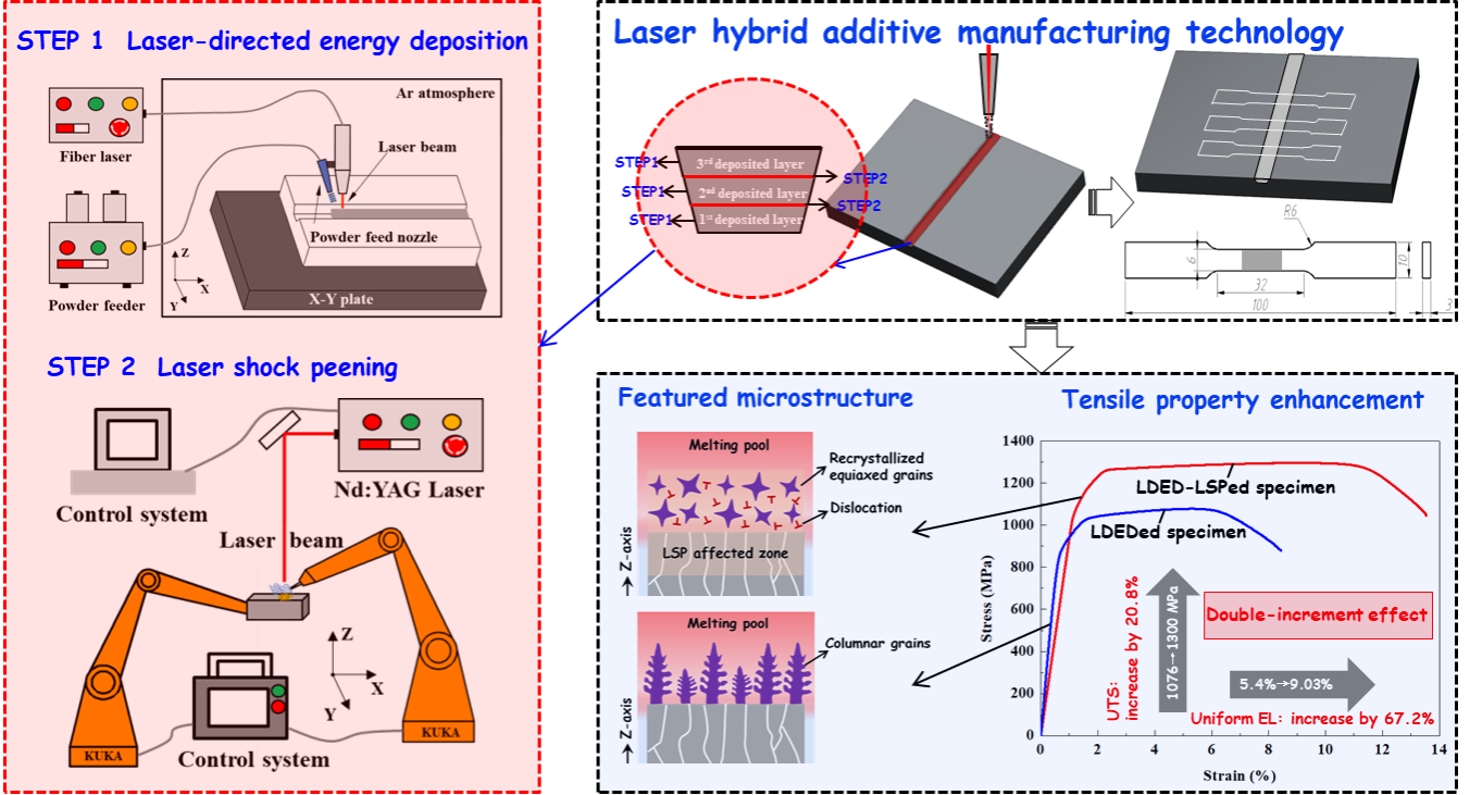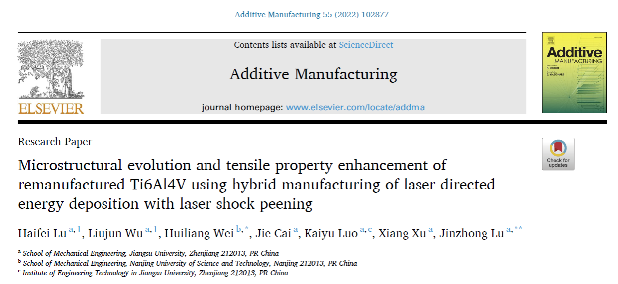近日,經(jīng)初評推薦、資格審查、專業(yè)評審、綜合評審等程序,機(jī)械工程學(xué)院魯金忠教授團(tuán)隊(duì)發(fā)表在《Additive Manufacturing》上的SCI高被引論文“Microstructural evolution and tensile property enhancement of remanufactured Ti6Al4V using hybrid manufacturing of laser directed energy deposition with laser shock peening(激光熱力交互沉積再制造Ti6Al4V合金微觀組織演變和拉伸性能強(qiáng)化)”入選2024年江蘇省自然科學(xué)百篇優(yōu)秀學(xué)術(shù)成果論文推選(江蘇大學(xué)唯一入選)。青年教師盧海飛副教授為第一作者,魯金忠和南京理工大學(xué)韋輝亮教授為共同通訊作者。該工作得到國家自然科學(xué)基金(51775250)等資助。