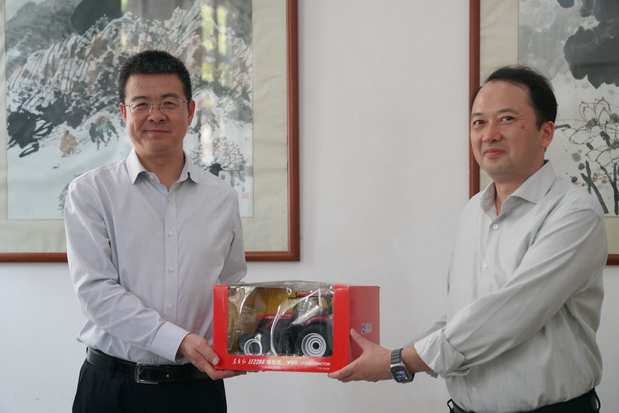 座談會后,樓志剛一行參觀了校史館、中國農機文化展示館和圖書館。任旭東代表學校接受國機集團贈予的拖拉機紀念模型。