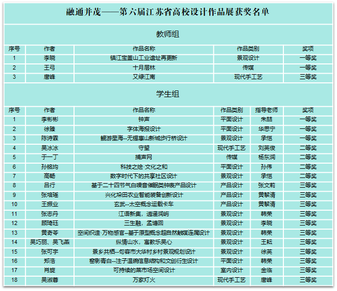 我校師生在第六屆江蘇省高校設(shè)計作品展中喜獲佳績