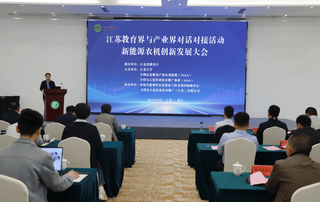 10月11日,由江蘇省教育廳指導,江蘇大學、車載信息服務產業應用聯盟(TIAA)、全程無人化作業技術推廣體系(AAA)共同主辦,省部共建現代農業裝備與技術協同創新中心和全程無人化作業技術推廣(江蘇)有限公司承辦的“江蘇教育界與產業界對話對接活動-新能源農機創新發展大會”在學校舉行,來自農機高校、院所和企業的100余名代表參加了本次會議。