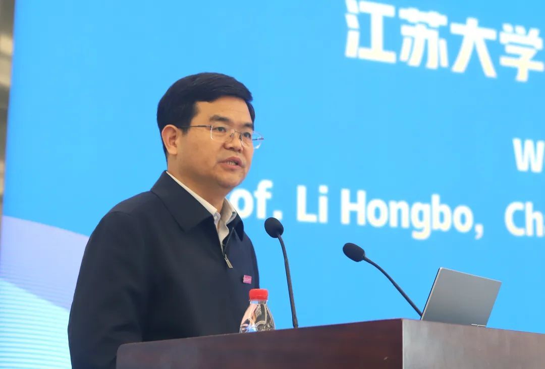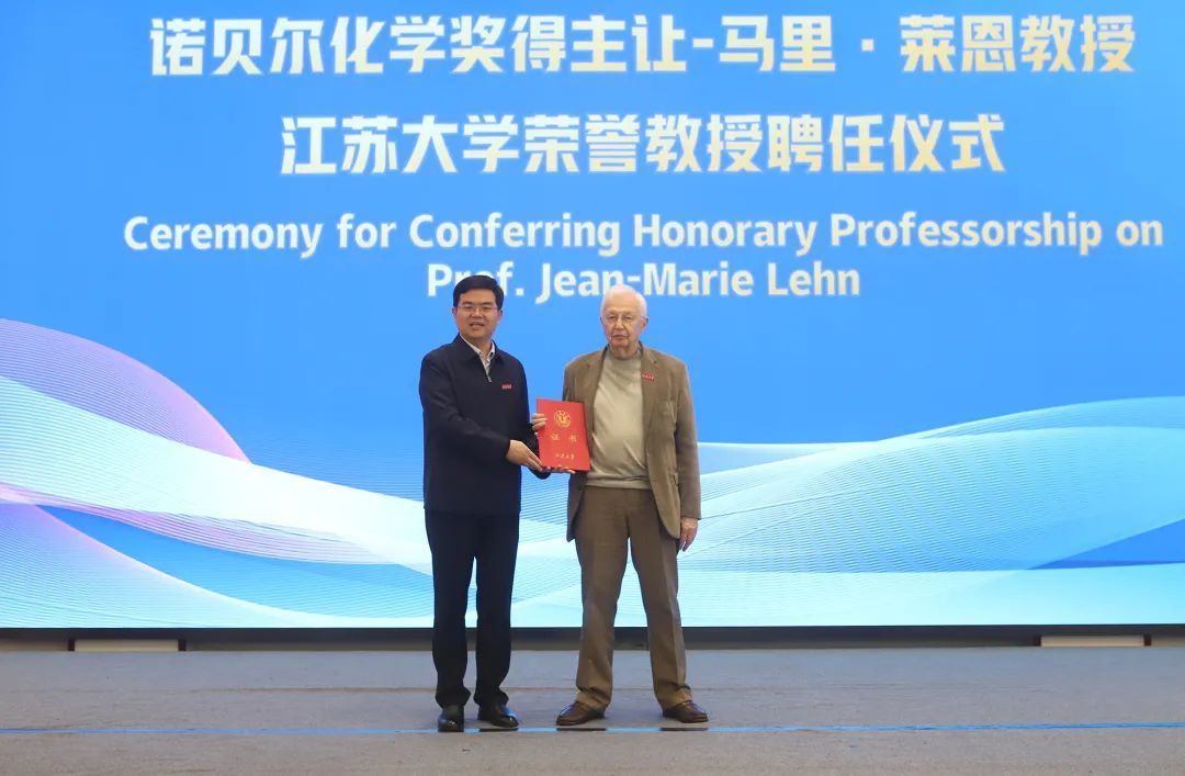 報(bào)告會(huì)上,李洪波為讓-馬里·萊恩頒發(fā)江蘇大學(xué)榮譽(yù)教授聘書。