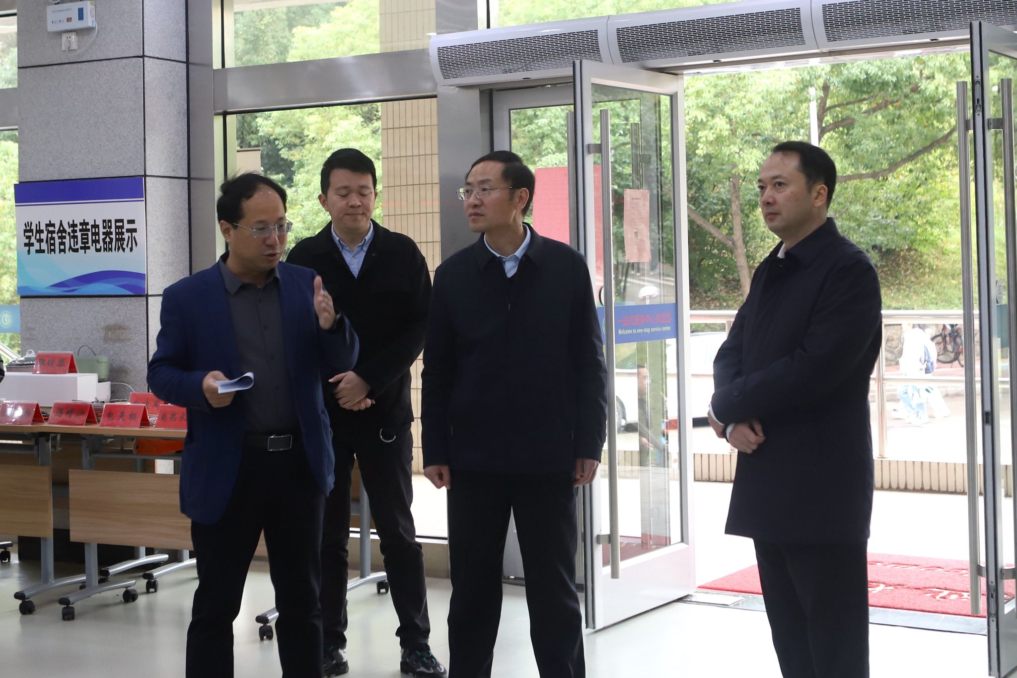 11月20日,由中國礦業大學黨委副書記李江濤帶隊,省高校安全檢查第十三工作組一行來我校開展安全檢查。校黨委常委、副校長任旭東及相關職能部門負責人陪同檢查。