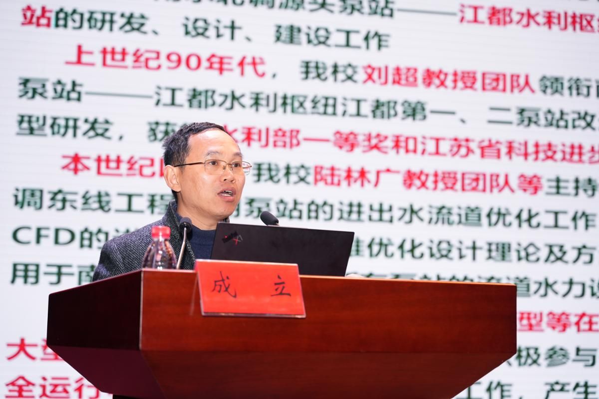 在大會特邀報告環(huán)節(jié),國家水泵及系統(tǒng)工程技術研究中心主任袁壽其、中國農業(yè)大學王福軍、南水北調東線總公司馮旭松、中國水利水電科學研究院周葉、揚州大學成立、甘肅省景泰川電力提灌水資源利用中心張茂林、湖北省樊口電排站管理處李強、江蘇省水利勘測設計研究院有限公司張仁田,分別圍繞“大型調水工程泵裝置關鍵技術研究及工程應用”“大型引調水工程中的泵站運行安全問題思考”“南水北調東線一期工程泵站工程調度運行現(xiàn)狀及展望”“泵站數(shù)字孿生關鍵技術研究、發(fā)展及應用”“平原水網(wǎng)低揚程大中型泵站節(jié)能高效運行關鍵技術研究進展”“全力推進景電灌區(qū)(泵站)標準化建設”“搶抓試點推進標準化管理,科技賦能推動信息化建設”“低揚程泵站工程技術:傳承與創(chuàng)新”等方面進行了精彩的專題報告。
