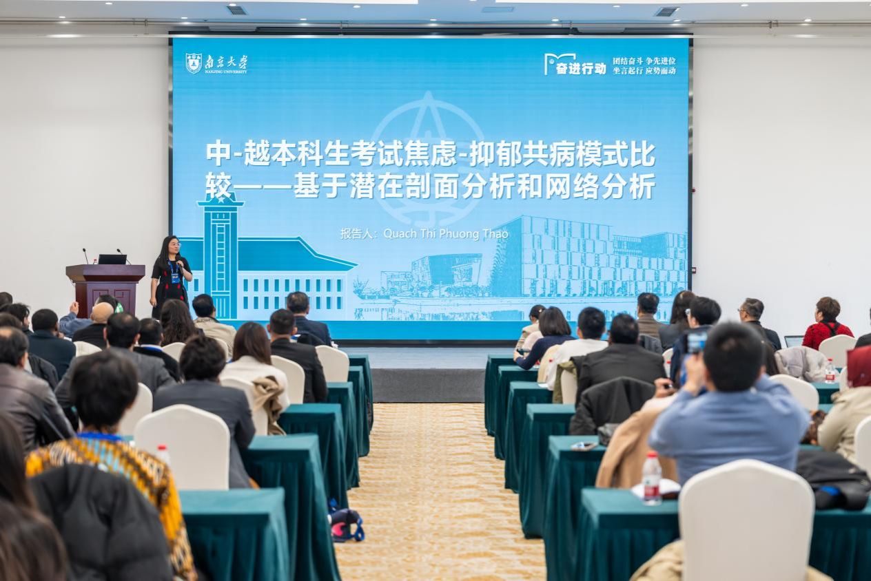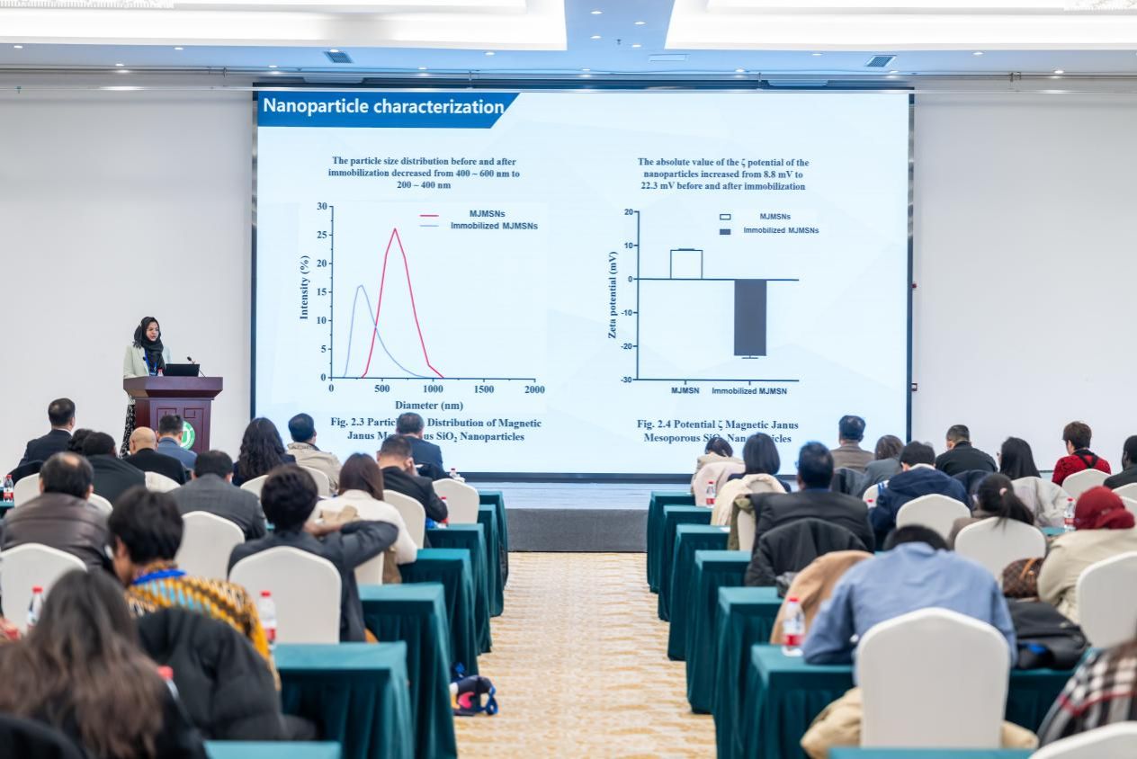 張海軍在致辭中表示,作為江蘇高校首屆外國留學研究生學術交流盛會,本次研討會搭建了一個開放包容、互動共享的高水平學術平臺。他指出,留學生群體不僅是文化交流的重要橋梁,更是推動科技創新的生力軍。他期待來自不同國家、不同學校、不同學科的留學研究生能夠在此切磋交流、展示成果,并通過學術探討增進友誼,為構建人類命運共同體貢獻智慧與力量。