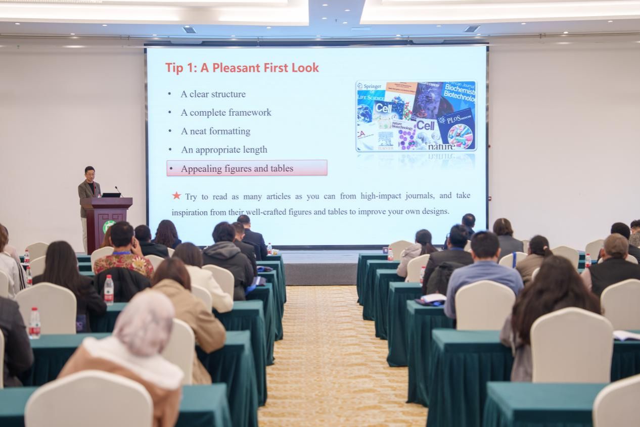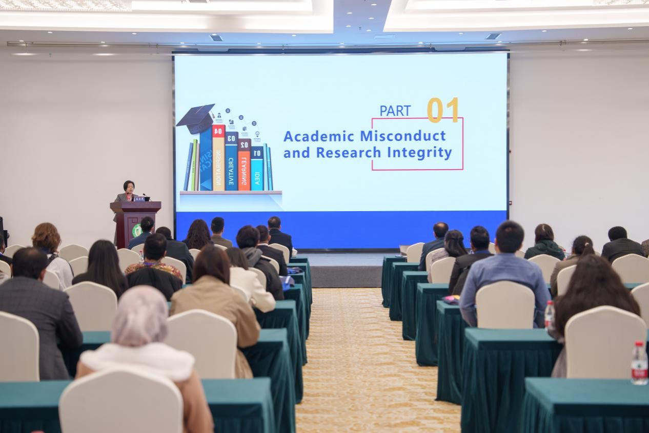 研討會特邀四位專家作主旨報告。南京航空航天大學教授彭聰圍繞來華留學生如何加強學術誠信和規范進行了深入探討,系統闡述了誠信寫作的核心價值與具體實踐方法。南京理工大學教授陳翔就在中韓兩國的求學和工作經歷進行了深入分享,探討了留學研究生如何應對文化適應與學術研究的雙重挑戰。東南大學教授浦正寧就國際研究生如何更好地適應和融入中國特色研究生培養體系進行了深入解讀,結合中國作為全球第二大研究生培養國的優勢,為在場留學生提供了切實可行的適應策略。江蘇大學教授張琪就科學寫作中的關鍵技巧與常見陷阱進行了深入剖析,詳細闡述了如何在競爭激烈的學術領域撰寫高質量論文。