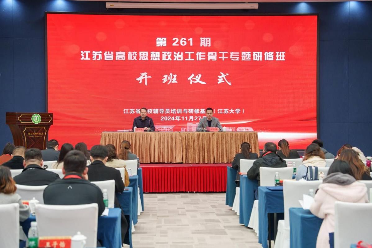 近日,由江蘇省教育廳主辦,江蘇省高校輔導員培訓與研修基地(江蘇大學)承辦的第261期江蘇省高校思想政治工作骨干專題研修班舉辦。校黨委常委、副校長任旭東出席開班儀式并講話,全省118所高校的學員參加培訓。