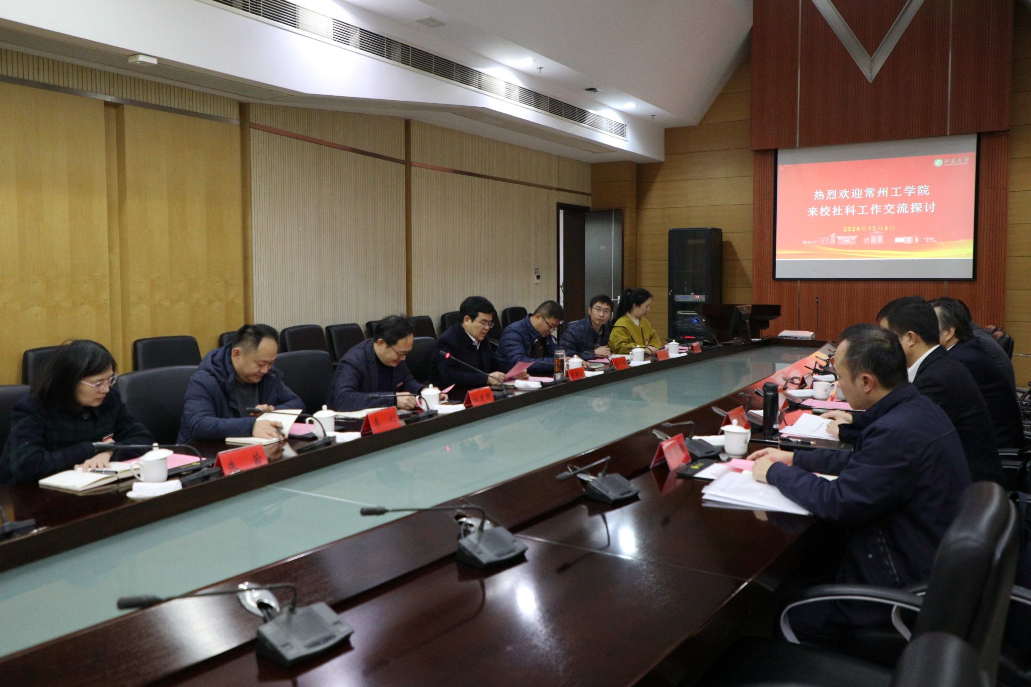 12月4日,常州工學院黨委書記湯正華、副院長韓建剛一行來校交流調研人文社科事業發展舉措。校黨委書記李洪波、副校長李紅接待來訪一行,社會科學處全體工作人員參加交流活動。