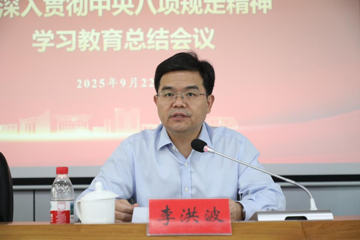 李洪波強調(diào),學(xué)習(xí)教育結(jié)束不是作風(fēng)建設(shè)的終點,而是新的起點,并就鞏固深化學(xué)習(xí)教育成果、推動作風(fēng)建設(shè)常態(tài)化長效化強調(diào)五點意見:一要筑牢思想根基,推動理論武裝常態(tài)化、推動警示教育常態(tài)化、推動黨員干部教育培訓(xùn)常態(tài)化,切實在深化認識、常學(xué)常新上持續(xù)用力;二要深化問題導(dǎo)向,持續(xù)深化問題查擺、聚焦重點難點攻堅、堅持開門教育,切實在常態(tài)糾治、精準(zhǔn)施治上持續(xù)用力;三要注重制度建設(shè),進一步完善制度體系、強化制度執(zhí)行、優(yōu)化工作機制,切實在完善體系、強化執(zhí)行上持續(xù)用力;四要聚焦事業(yè)發(fā)展,弘揚教書育人新風(fēng)尚、構(gòu)筑黨建引領(lǐng)新格局、激活事業(yè)發(fā)展新動能,切實在成果轉(zhuǎn)化、擔(dān)當(dāng)作為上持續(xù)用力;五要壓實政治責(zé)任,堅決扛起主體責(zé)任、著力提升監(jiān)督質(zhì)效,切實在以上率下、嚴管嚴治上持續(xù)用力。