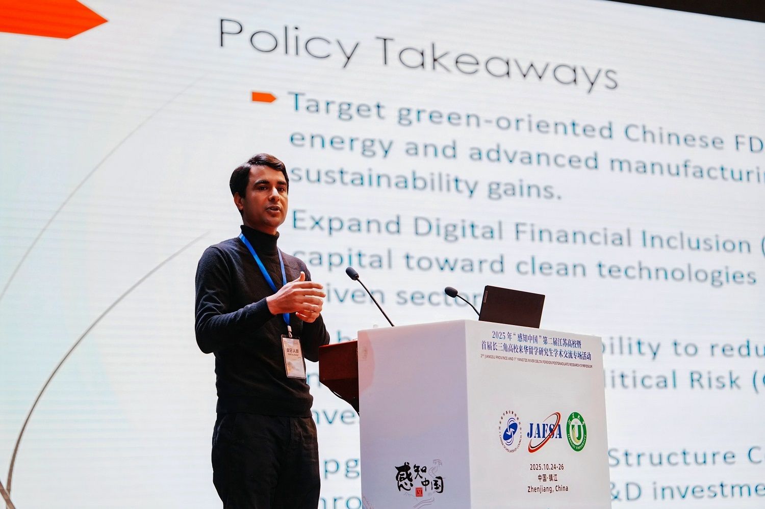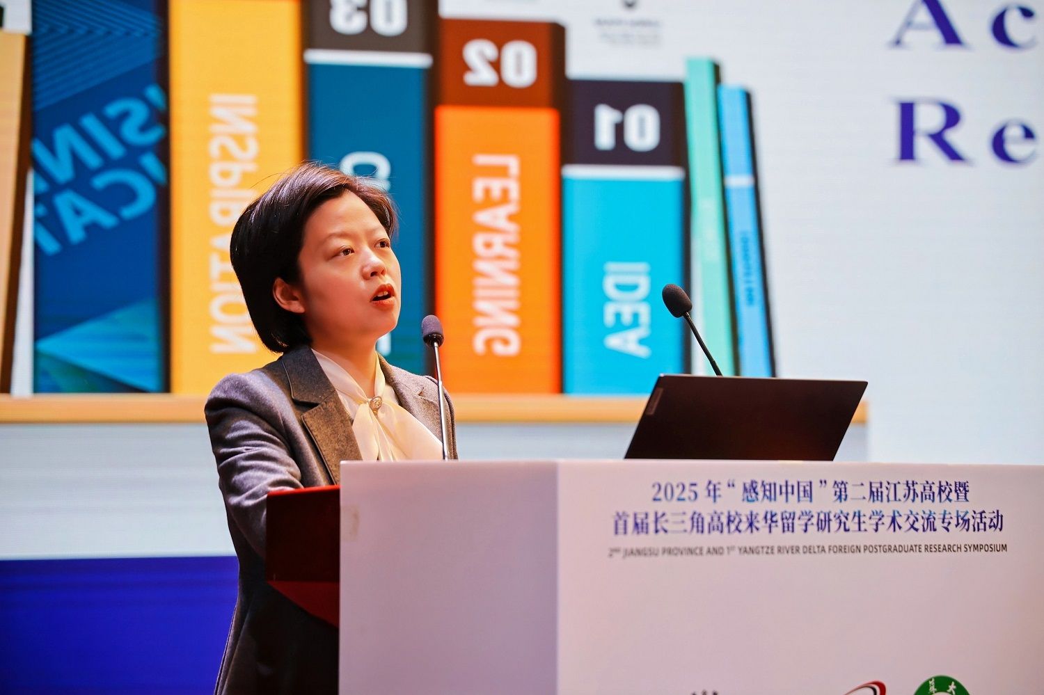 蔡英鳳簡要介紹了江蘇大學的歷史沿革,強調了學校在來華留學教育方面的舉措與成效。她指出,學校堅持開放辦學理念,致力推動來華留學教育高質量發展。她表示,本次活動為長三角地區高校的來華留學研究生提供了一個學術與文化交流的平臺,期待大家通過此次活動在跨學科、跨區域的討論中碰撞出創新的火花,增進相互理解,推動學術進步。
