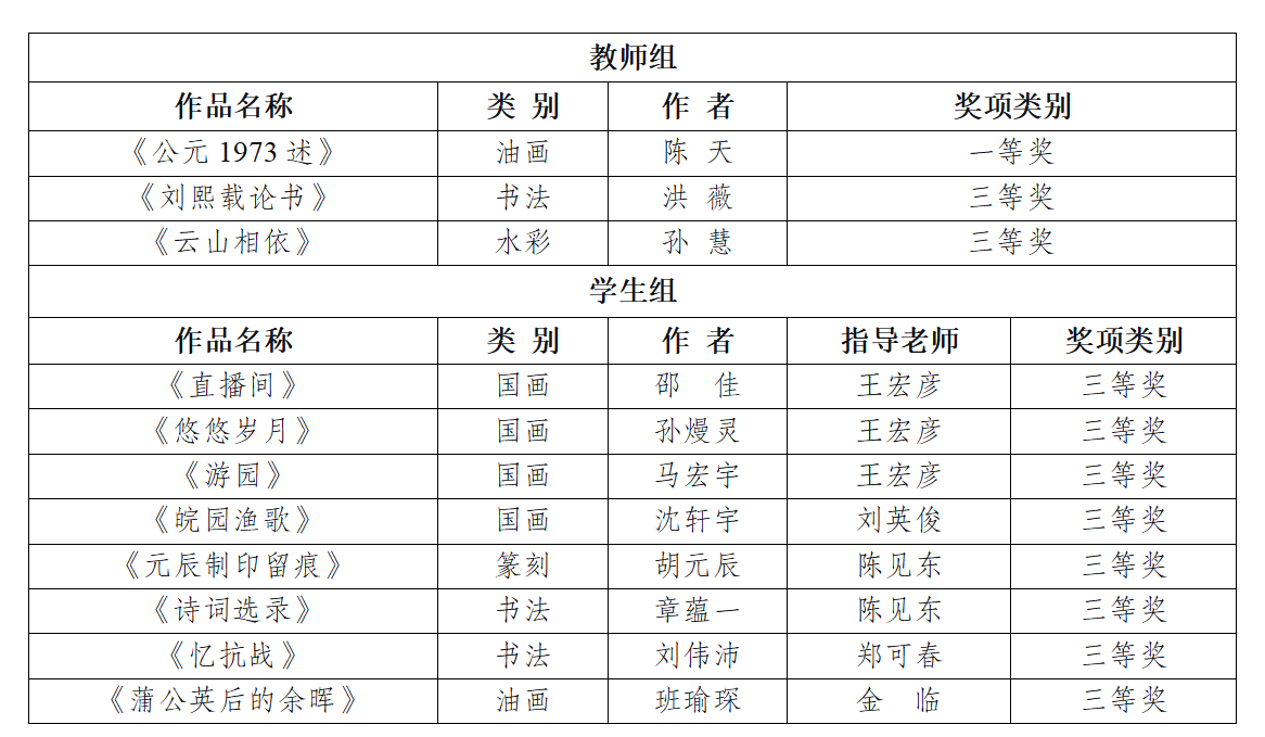 近日,江蘇省教育廳舉辦的“時代風華——第七屆江蘇省高校美術書法作品展”評選結果揭曉,我校選送的作品共獲11個獎項。
