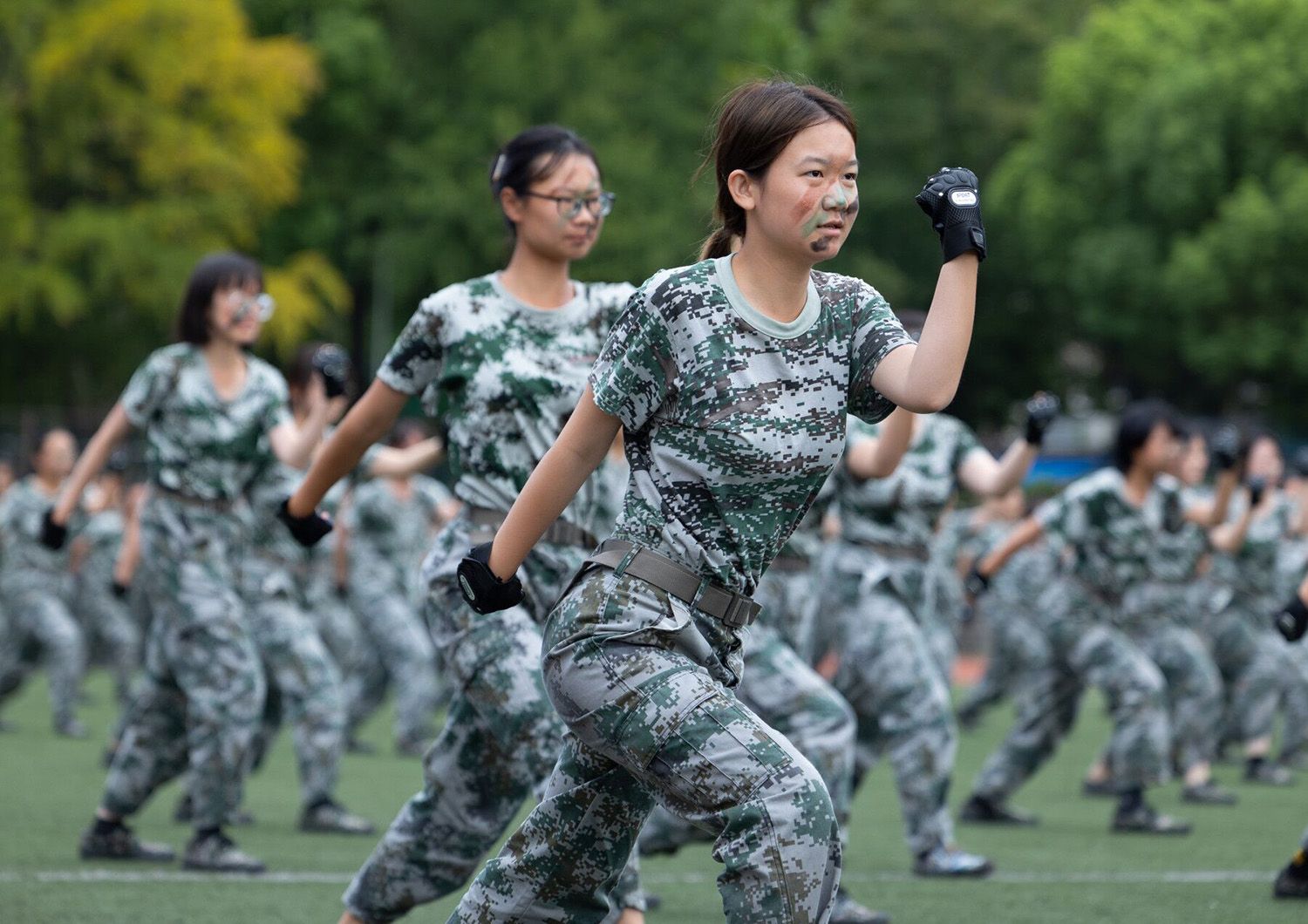 分列式環(huán)節(jié),3個特色方隊和12個軍訓(xùn)營方隊一一從主席臺前經(jīng)過;軍體拳、格斗術(shù)、匕首操等軍訓(xùn)特色課目依次匯報展示。