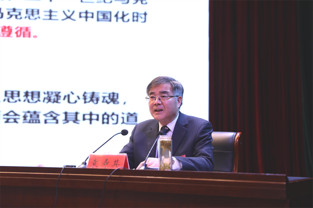袁壽其從“深刻領(lǐng)會(huì)黨的二十大的重大意義,自覺(jué)用習(xí)近平新時(shí)代中國(guó)特色社會(huì)主義思想凝心鑄魂”“準(zhǔn)確把握黨的二十大報(bào)告的精髓要義,汲取投身強(qiáng)國(guó)復(fù)興偉業(yè)的思想偉力”“不負(fù)黨的殷切期望,立志成長(zhǎng)為堪當(dāng)民族復(fù)興重任的時(shí)代新人”三方面闡述,鼓勵(lì)青年師生凝聚青春思想、勇?lián)啻菏姑?/p>