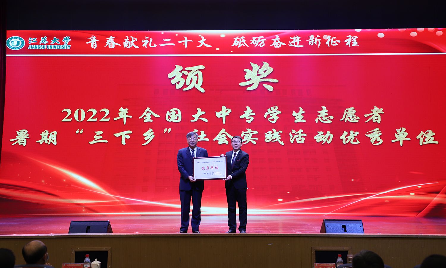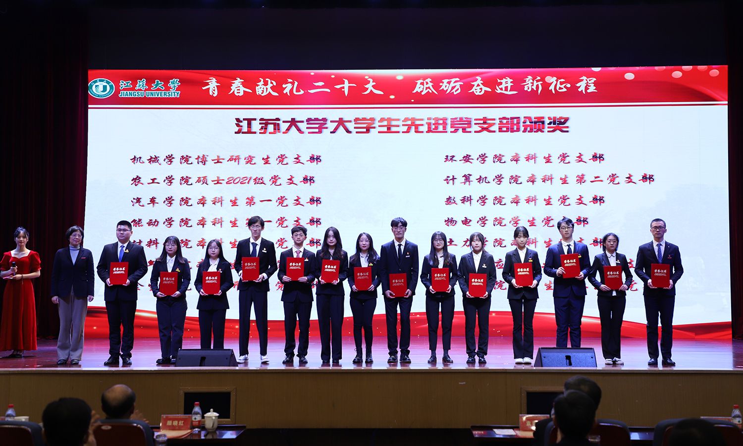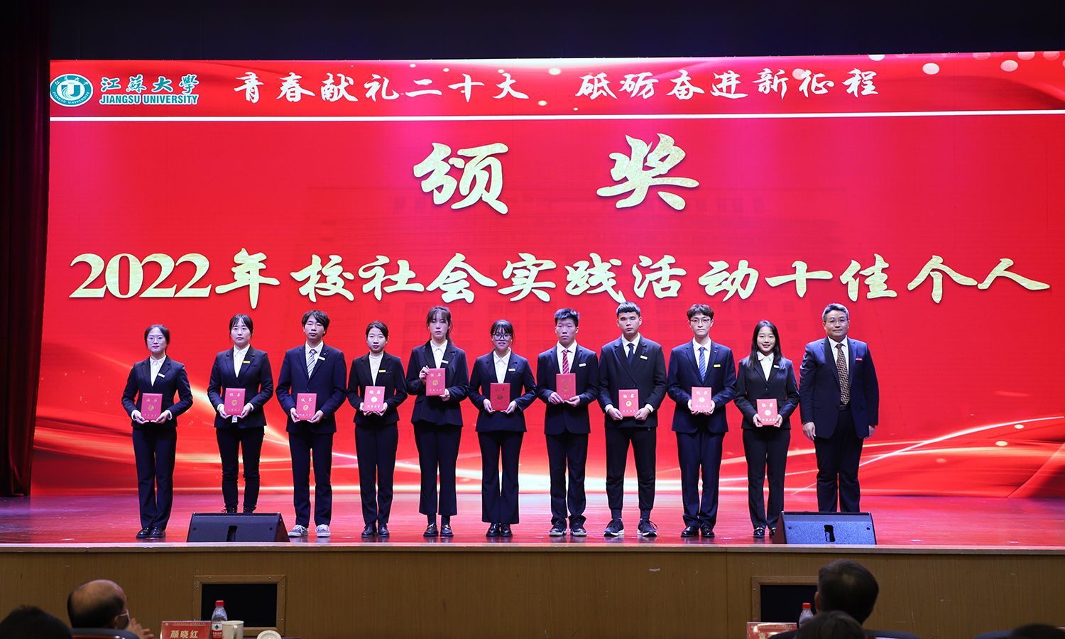 出席大會的領導為受表彰的先進集體和個人頒獎。校黨委書記袁壽其為獲得第八屆中國國際“互聯網+”大學生創新創業大賽國賽金獎、銀獎團隊代表和2022年全國大中專學生志愿者暑期“三下鄉”社會實踐活動優秀單位頒獎;顏曉紅為2021-2022學年“博學”“求是”“明德”校長獎章獲得者頒獎;校黨委副書記李洪波為2022年度省級三好學生頒獎;校黨委常委、紀委書記、派駐監察專員高慶國為2022年度省級優秀學生干部、省級先進班集體頒獎;副校長全力為2021-2022學年校三好標兵、校優秀研究生標兵頒獎;副校長趙玉濤為2022年度校大學生優秀共產黨員代表頒獎;副校長李紅為2022年度校大學生先進黨支部頒獎;校黨委常委、組織部部長馬志強為2022年校社會實踐活動先進單位頒獎;校黨委常委、統戰部部長楊敬江為2022年校社會實踐活動十佳團隊頒獎;校黨委常委、宣傳部部長楊道建為2022年校社會實踐活動十佳個人頒獎。