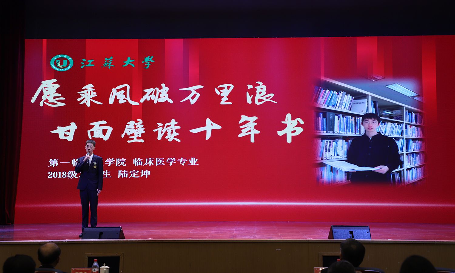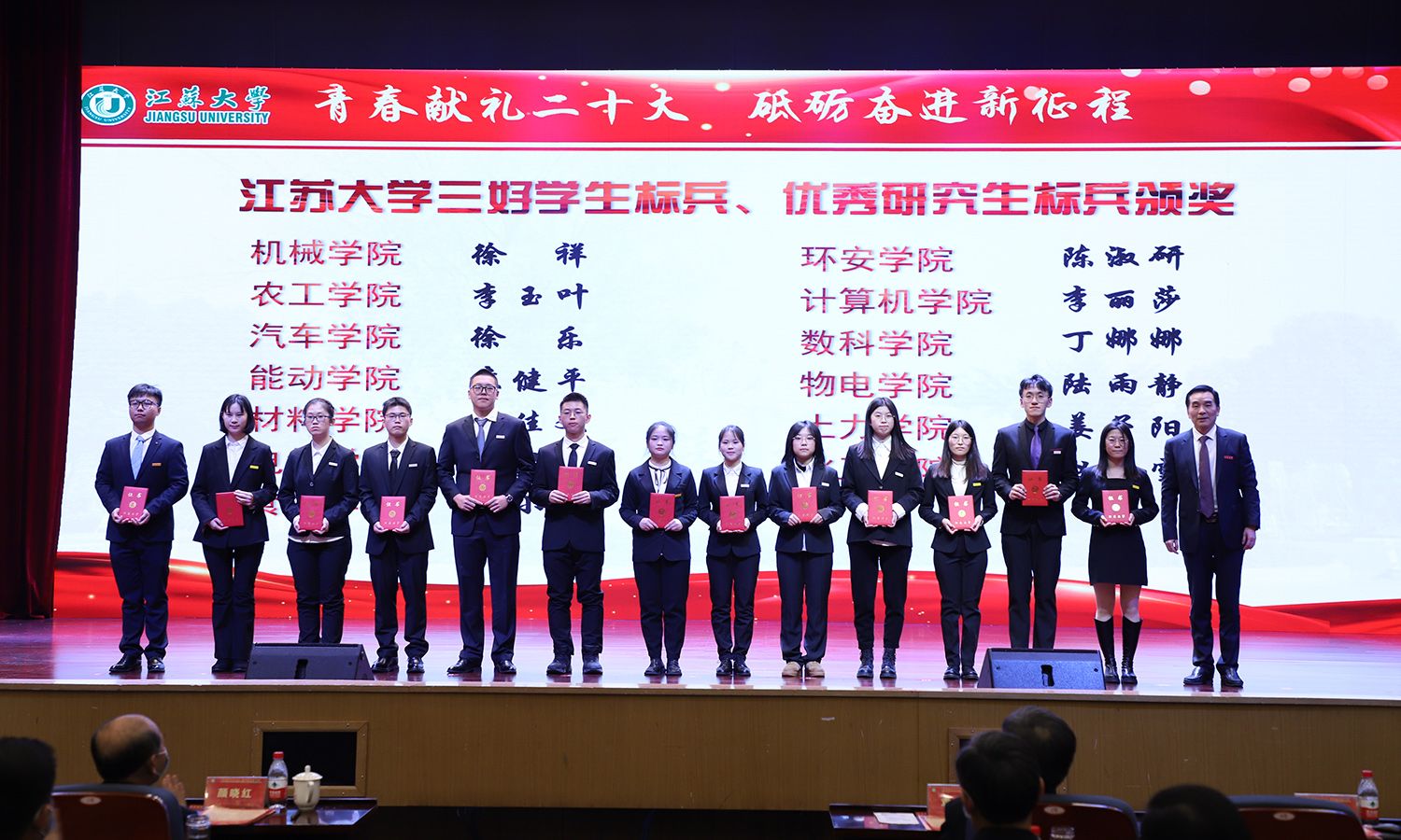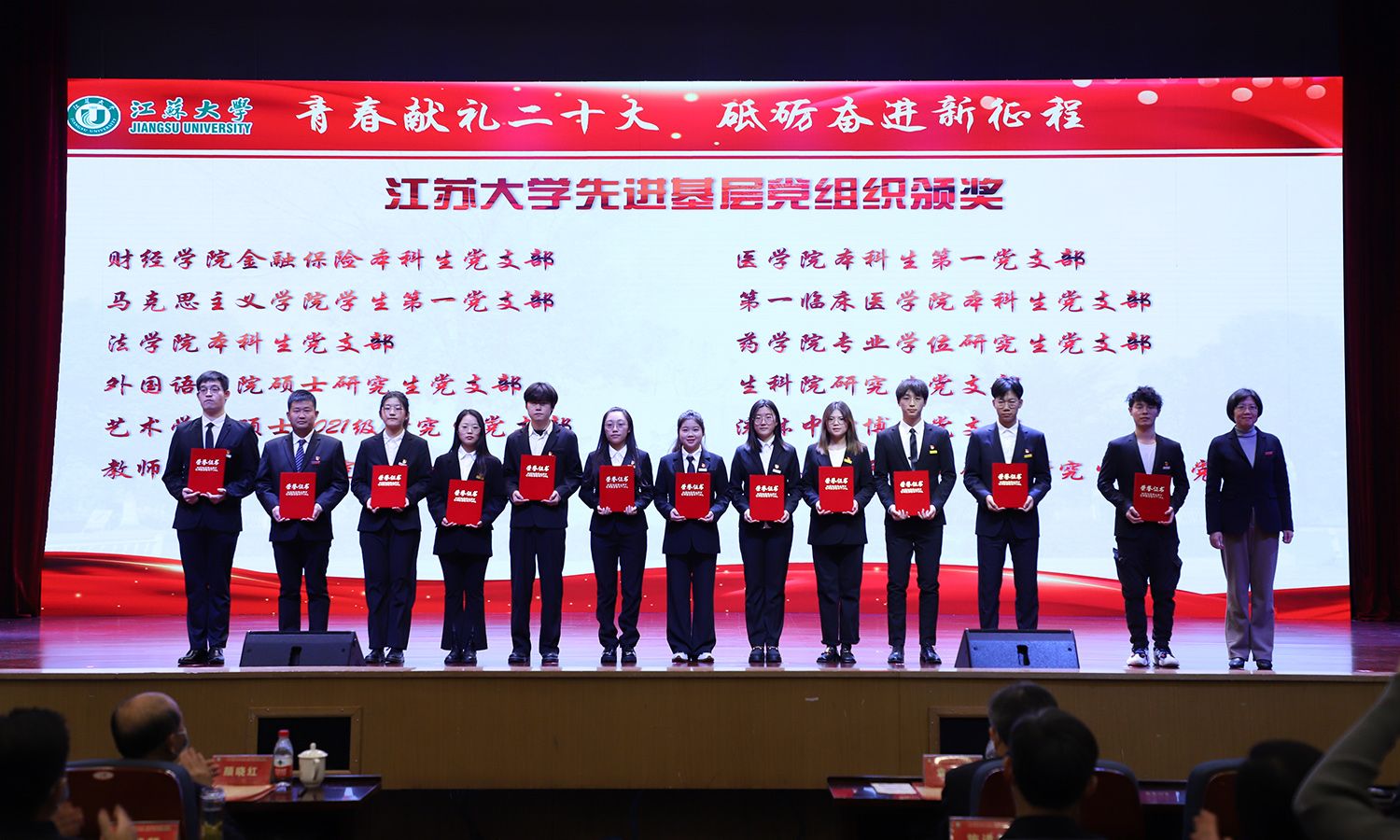 因疫情防控需要,大會以線上線下方式進行。各學院組織師生通過江蘇大學官方微信視頻號觀看直播。(黨委學生工作部)