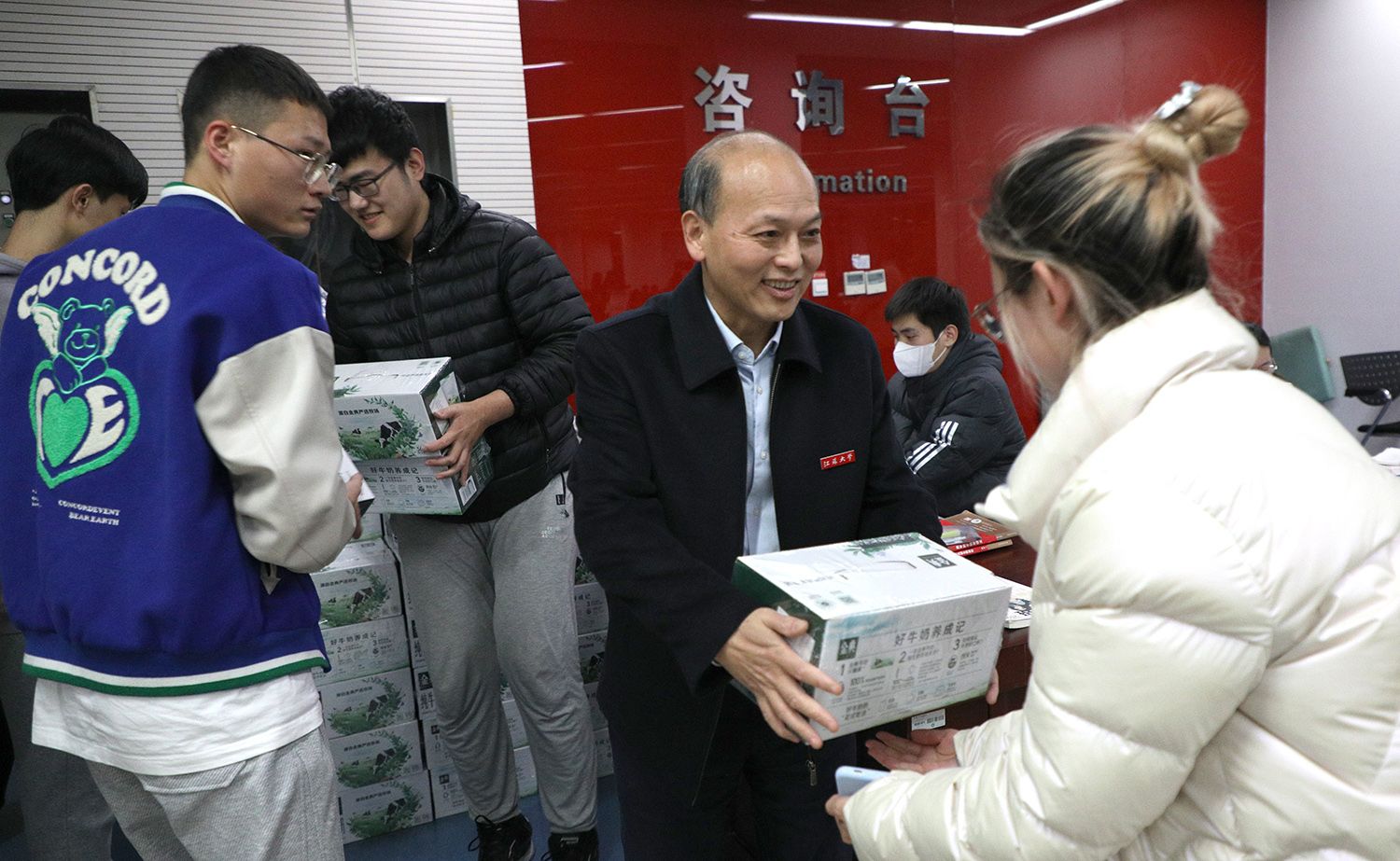顏曉紅和李洪波關切詢問學生學習和生活情況,為在場備考學生送上慰問品,共發放牛奶1000余箱。他們叮囑學生堅定信心、腳踏實地,以必勝的信念迎接挑戰。同學們紛紛感謝學校的關心和鼓勵,表示將帶著這份關愛全心投入、積極備戰。慰問結束后,不少同學主動走到顏曉紅身旁交流。