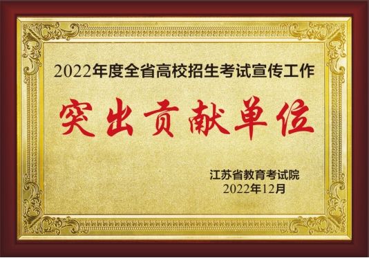 近日,由江蘇省教育考試院組織的2022年度全省高校招生宣傳工作考核結(jié)果揭曉,我校榮獲“突出貢獻(xiàn)單位”稱號(hào)。