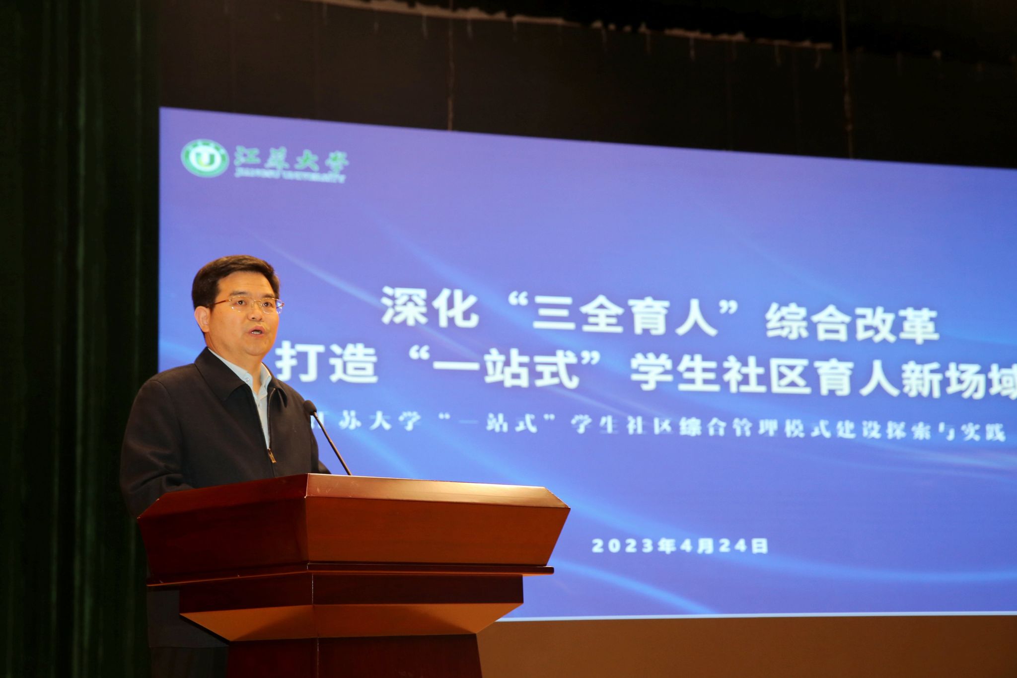 4月24日,江蘇省高校“一站式”學生社區綜合管理模式建設工作推進會在南京審計大學召開,省委教育工委副書記、省教育廳黨組成員徐子敏出席會議并講話。我校黨委副書記李洪波代表學校參會并作會議交流發言。