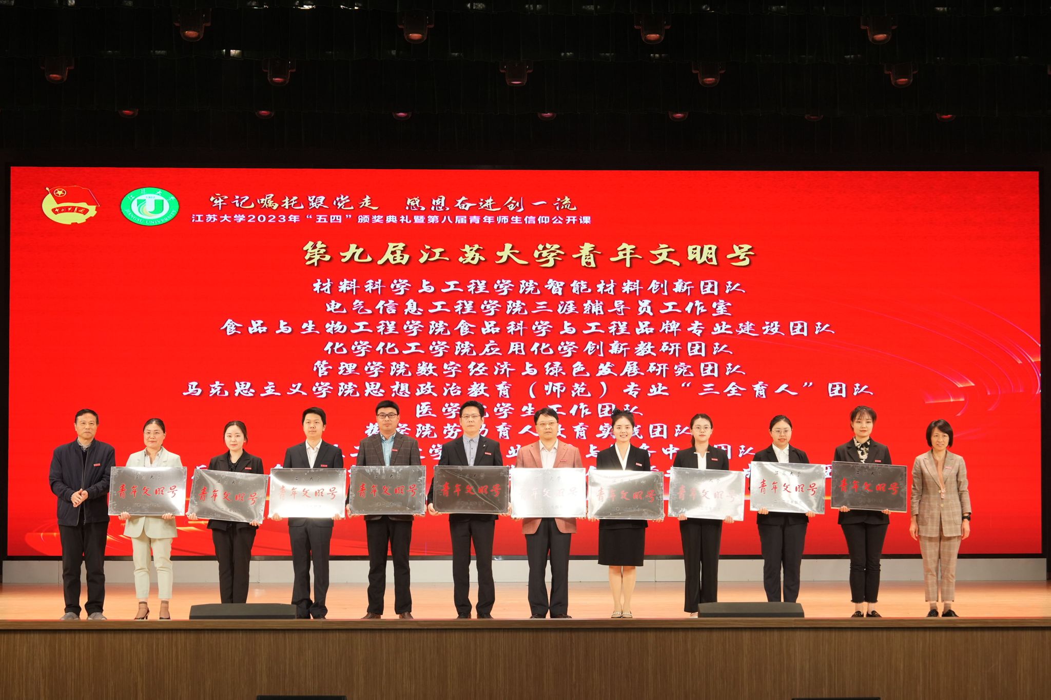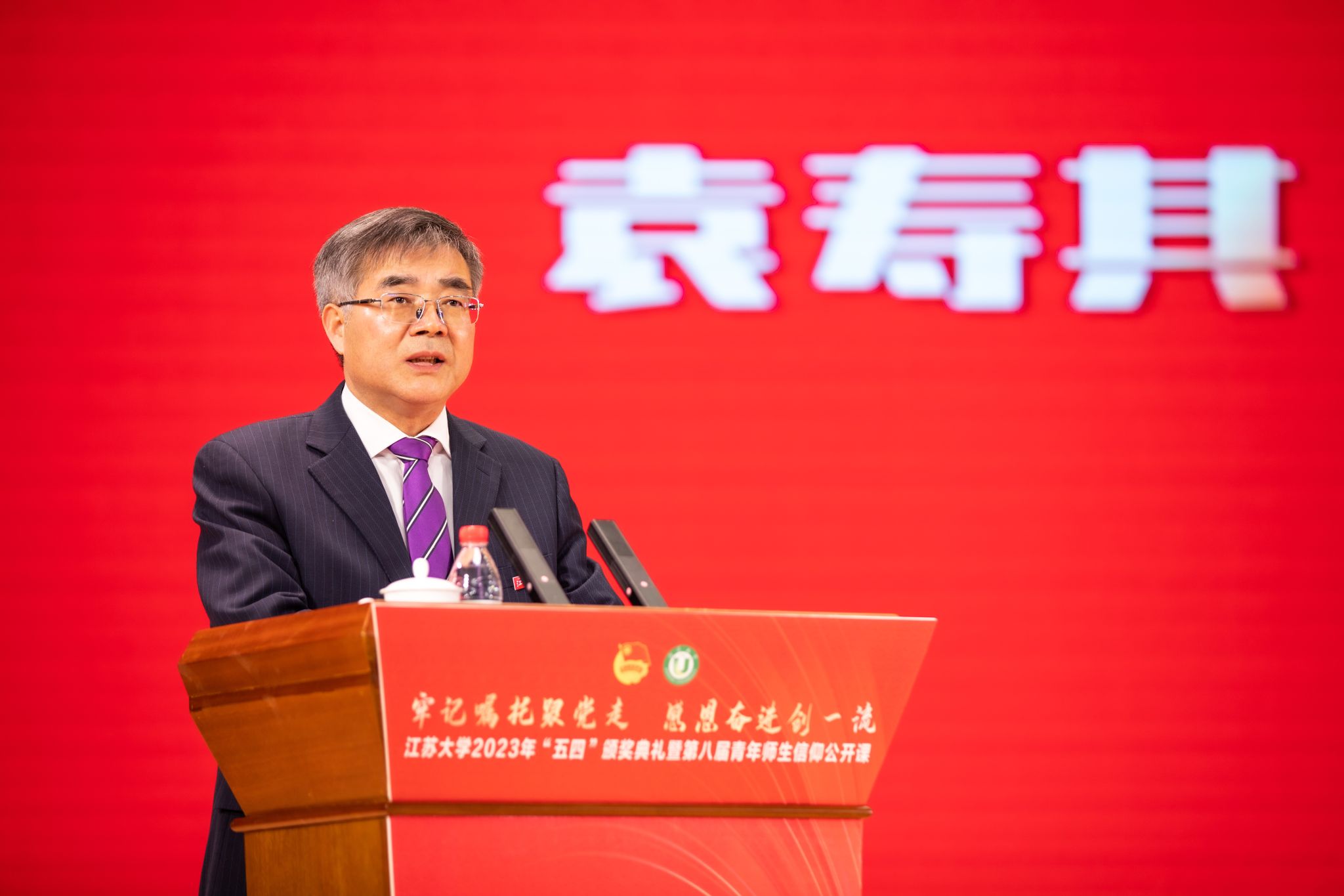 牢記囑托跟黨走,感恩奮進創(chuàng)一流 。4月26日,2023年江蘇大學(xué)“五四”頒獎典禮暨第八屆青年師生信仰公開課在校本部大禮堂舉行。