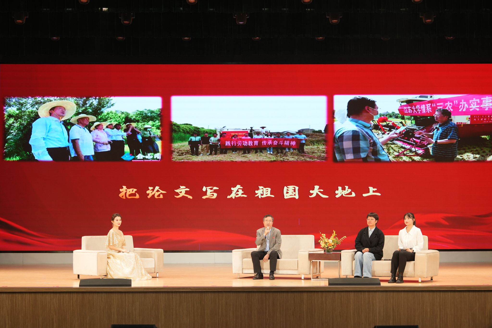 學(xué)校農(nóng)業(yè)工程學(xué)科方向帶頭人、國務(wù)院政府特殊津貼專家李耀明教授,省第十四次黨代會代表、“亞夫團隊”成員、鎮(zhèn)江市農(nóng)科院果樹研究室主任萬春雁,第十三屆“挑戰(zhàn)杯”中國大學(xué)生創(chuàng)業(yè)計劃競賽金獎團隊成員趙可欣,圍繞“共話黨的二十大,同筑鄉(xiāng)村振興夢”主題,分享知農(nóng)愛農(nóng)為農(nóng)青春故事。