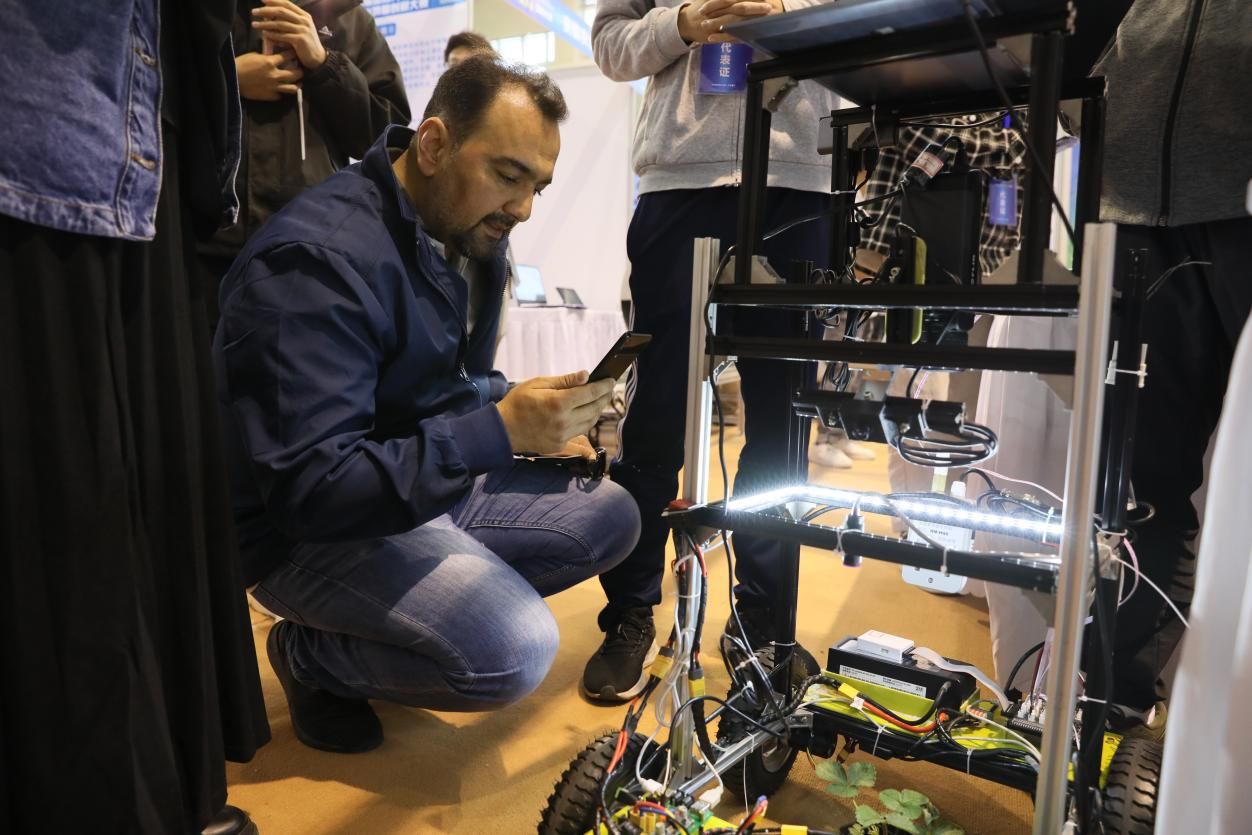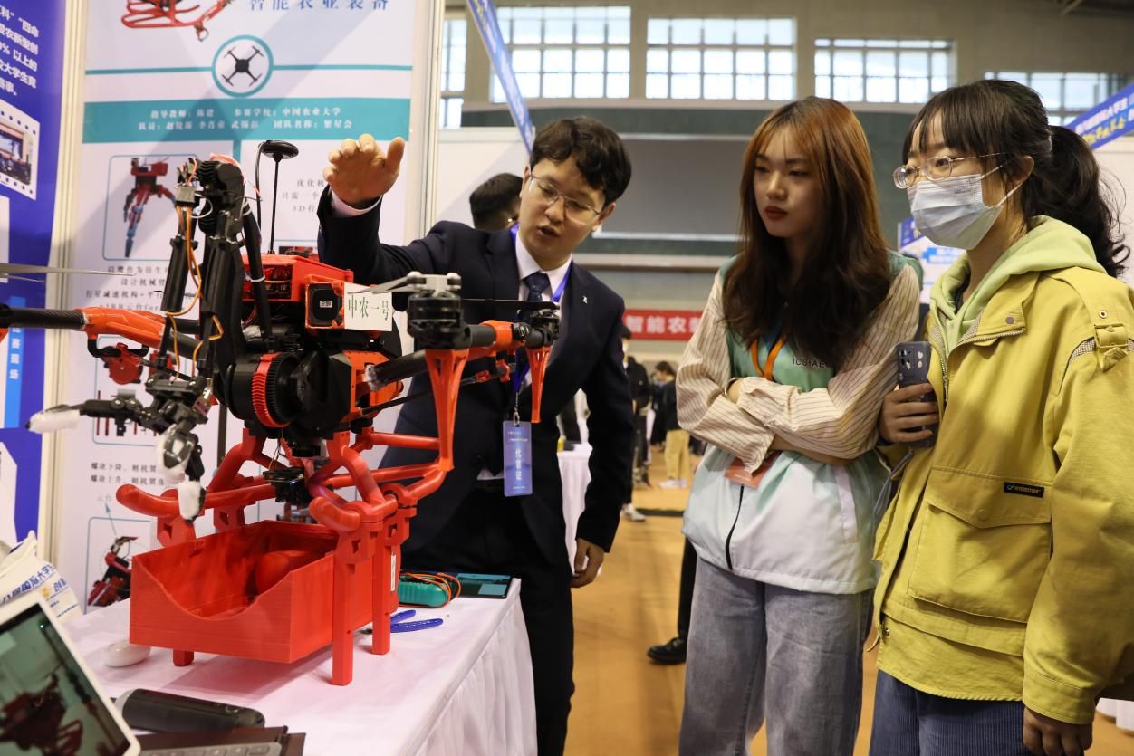 決賽期間,“護農衛士——作物葉部健康狀態領航者”“基于紫外光解的便攜式自動化土壤重金屬電化學檢測系統”“一種可抬升式草方格直角種植機器人”“白馬農場智慧可視化系統交互設計”“果實采摘分選機器人”等來自中國農業大學、浙江大學、華南農業大學、江蘇大學等高校的300件創意作品亮相比拼。
