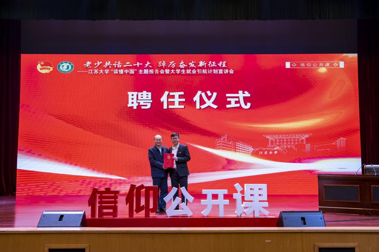 報告會前,舉行了客座教授聘任儀式。顏曉紅向黃興華頒發江蘇大學客座教授聘書并佩戴校徽。