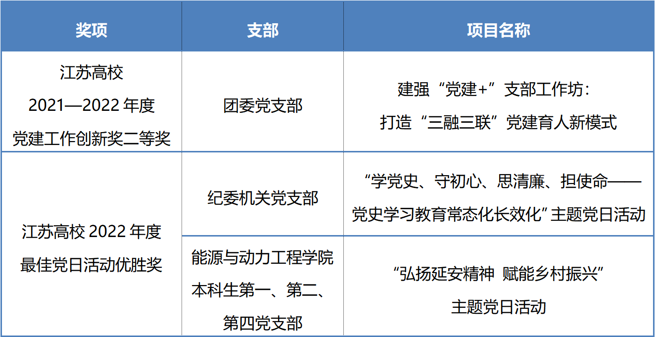 在建黨102周年來臨之際,我校黨建創(chuàng)新工作獲得省委教育工委表彰。在江蘇高校2021—2022年度黨建工作創(chuàng)新獎(jiǎng)和2022年度最佳黨日活動(dòng)優(yōu)勝獎(jiǎng)評(píng)選中,學(xué)校獲黨建工作創(chuàng)新二等獎(jiǎng)一項(xiàng)、最佳黨日活動(dòng)優(yōu)勝獎(jiǎng)兩項(xiàng)。