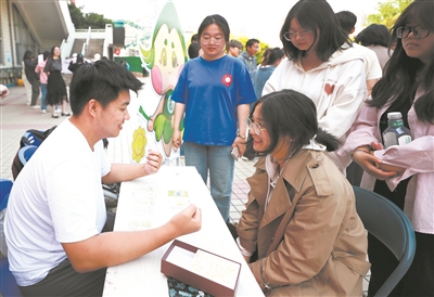 ③在社區(qū)心理游園會(huì)上,江蘇大學(xué)學(xué)生參加OH卡牌體驗(yàn)活動(dòng)。