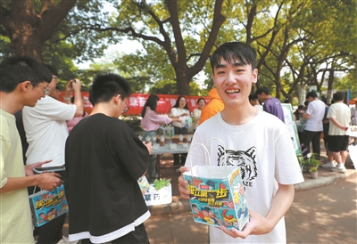 ⑦在江蘇大學(xué)藥學(xué)院舉辦的“‘植’此青蒿,‘藥’您同行”活動(dòng)中,一名大學(xué)生開心地領(lǐng)到免費(fèi)發(fā)放的中藥種植套裝。