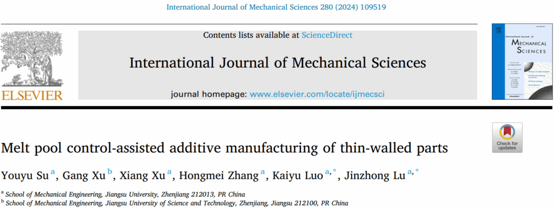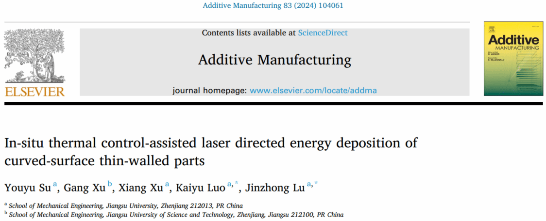 近日,我校機械工程學院羅開玉教授團隊在增材制造領域頂刊《增材制造》(Additive Manufacturing)和機械制造領域頂刊《國際機械科學雜志》(International Journal of Mechanical Sciences)上分別發表了題為In-situ thermal control-assisted laser directed energy deposition of curved-surface thin-walled parts和Melt pool control-assisted additive manufacturing of thin-walled parts的研究論文。